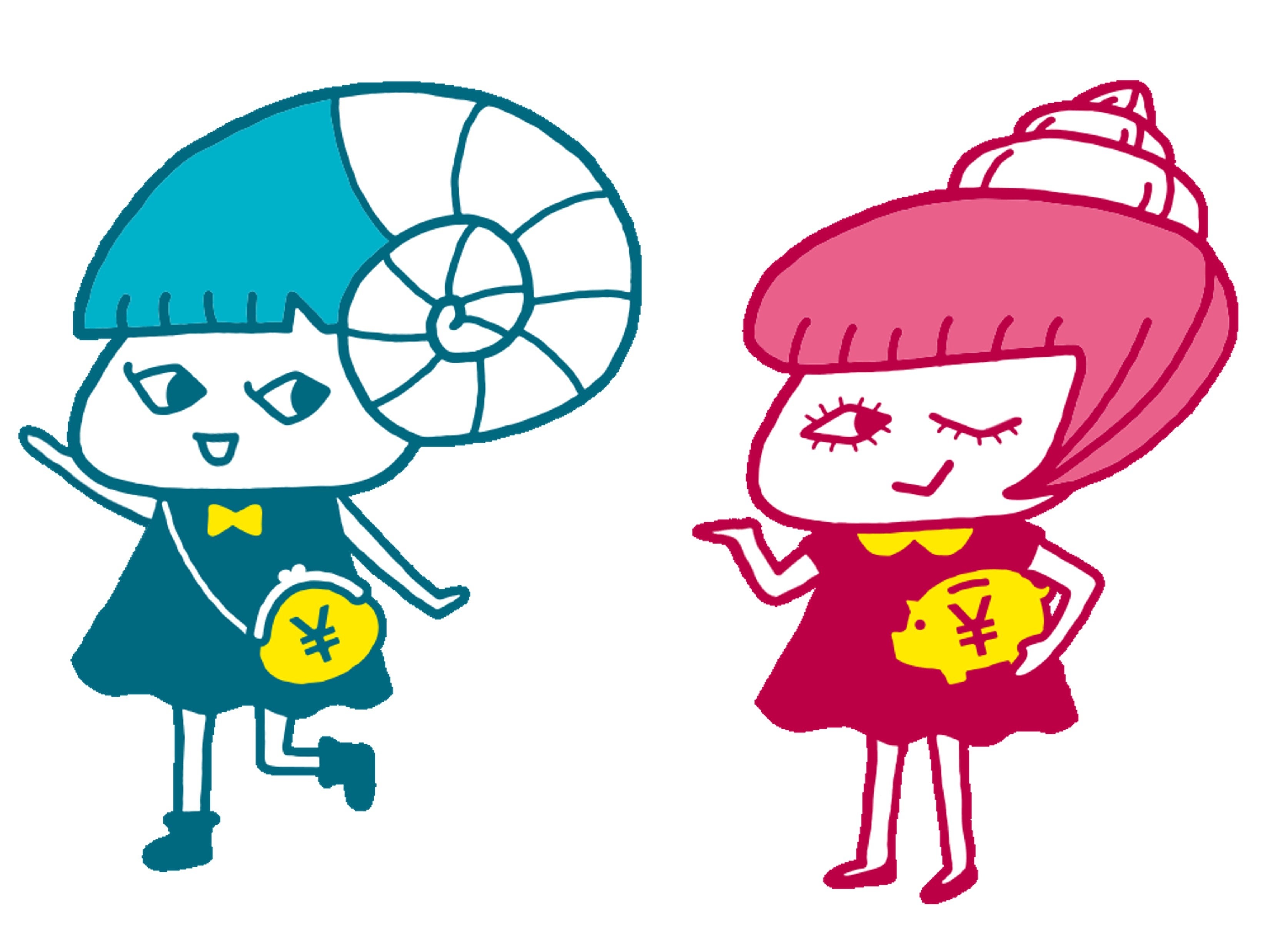 「財形シスターズ」は、財形貯蓄と財形持家転貸融資の広報キャラクター。姉が「シェリー」で、妹が「クラム」です。2人の頭は“貝”がモチーフになっており、古代の中国において“貝”が貨幣の役目を果たしたことに由来しています。また、「財形貯蓄」の『財』『貯』、「転貸融資」の『貸』『資』にも“貝”の字が含まれていることからとても関係性が深いという理由で誕生しました。