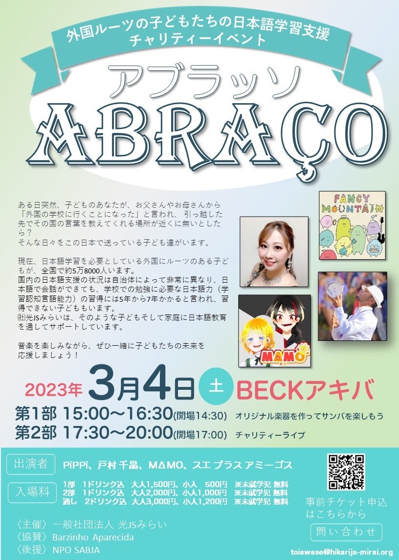 - 外国ルーツの子どもの日本語学習支援チャリティーイベント『Abraço アブラッソ』