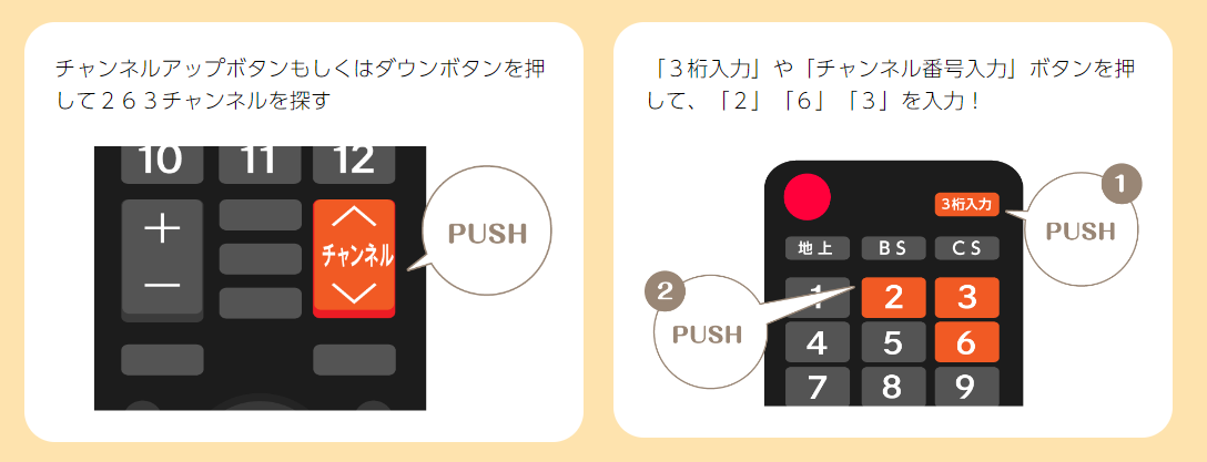 ③「番組表」の中から右左ボタンで 「BSJapanextチャンネルロゴ」(263ch)を見つけて選択