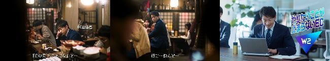 W2は、1000を超える機能を搭載したECプラットフォームを提供しています。たくさんの機能があり、ECの売上を上げるた めのアイデアを思いついたらすぐに実現できる、EC事業者様のさらなる事業拡⼤を叶えるサービスです。「やりたいことが⽌ まらないEC W2」というメッセージを伝えるべく、⼭本耕史さんにはEC担当者を演じていただき、居酒屋で聞こえる会話や、 そこで起こる状況から空⽿的にECの改善アイデアを思いつくというストーリーを制作しました。意外なきっかけから、意外な アイデアを思いつく”EC空⽿”と、⼭本さんの迫真の演技が⾒どころです。