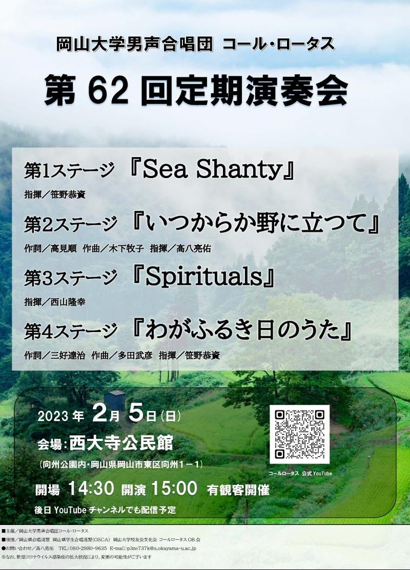 このたび、3年ぶりに有観客で「第62回定期演奏会」を、2023年2月5日(日)に岡山市東区の西大寺公民館で開催することになりました。