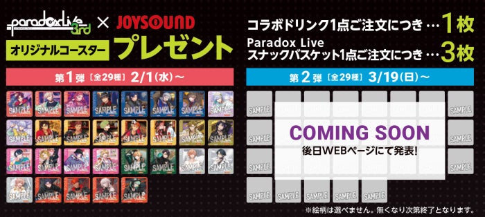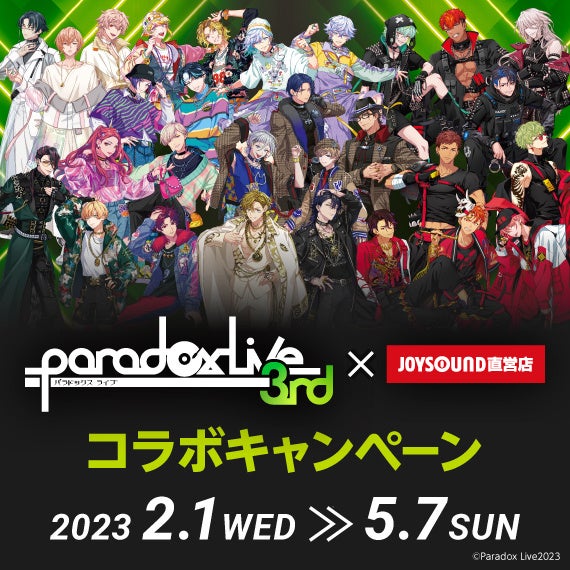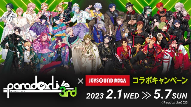 株式会社エクシングの子会社で、全国にカラオケ店舗を展開する株式会社スタンダード(本社:東京都港区、代表取締役社長:米田洋一)は、2023年2月1日(水)から2023年5月7日(日)までの期間中、「Paradox Live 3rd Anniversary×JOYSOUND直営店コラボキャンペーン」と題し、JOYSOUND池袋西口公園前店(東京)・JOYSOUND名駅二丁目店(愛知)・JOYSOUNDなんば戎橋店(大阪)・JOYSOUND博多口駅前店(福岡)の4店舗にカラオケコラボルームをオープン!また、JOYSOUND直営店全店舗にて、オリジナルコースター付きコラボメニューを展開します。さらに、限定店舗およびオンラインストアにて、オリジナルグッズの完全予約販売も行います。