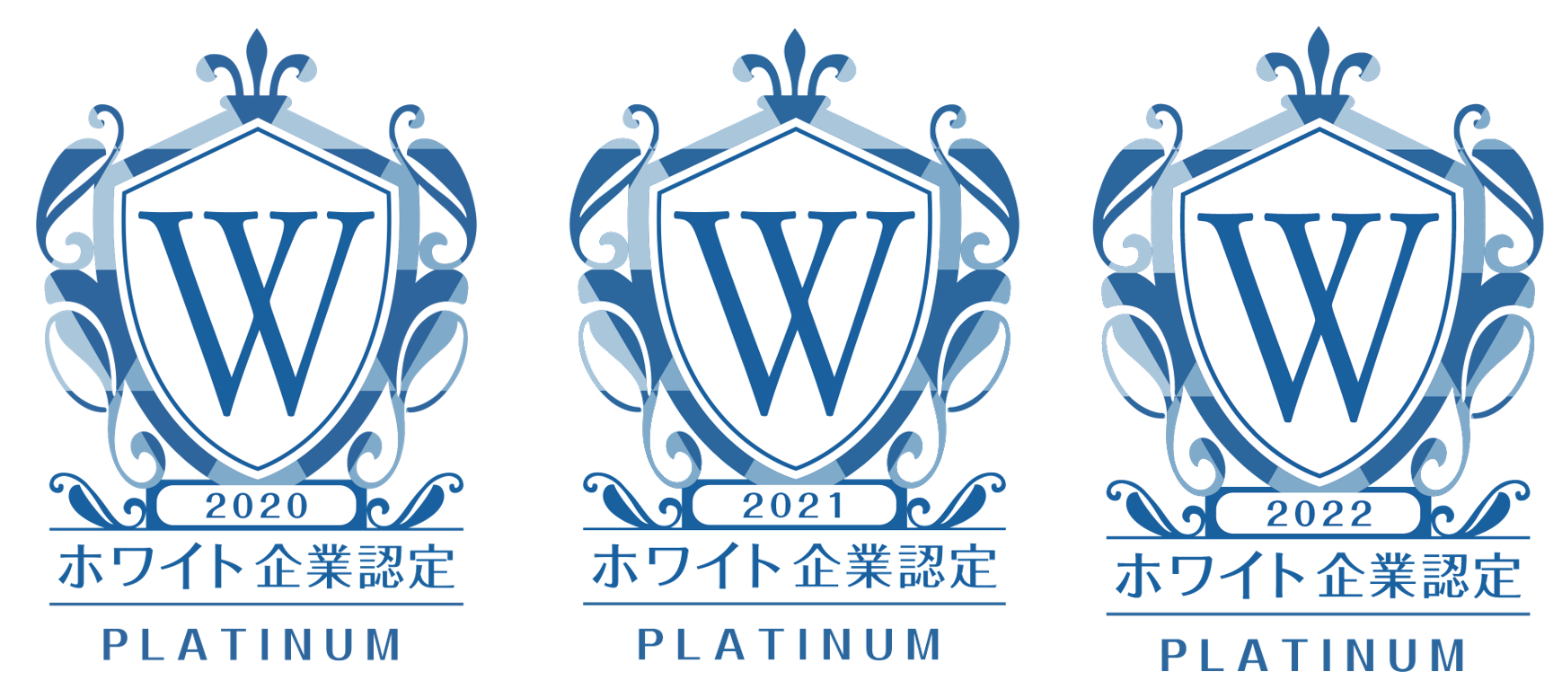 また、ホワイト企業認定では最高ランクの 「PLATINUM」 を3年連続取得しております。その効果として、新卒エントリー急増 (21卒→23卒 :57人→239人)、入社3年以内離職率0%に繋がっております。
