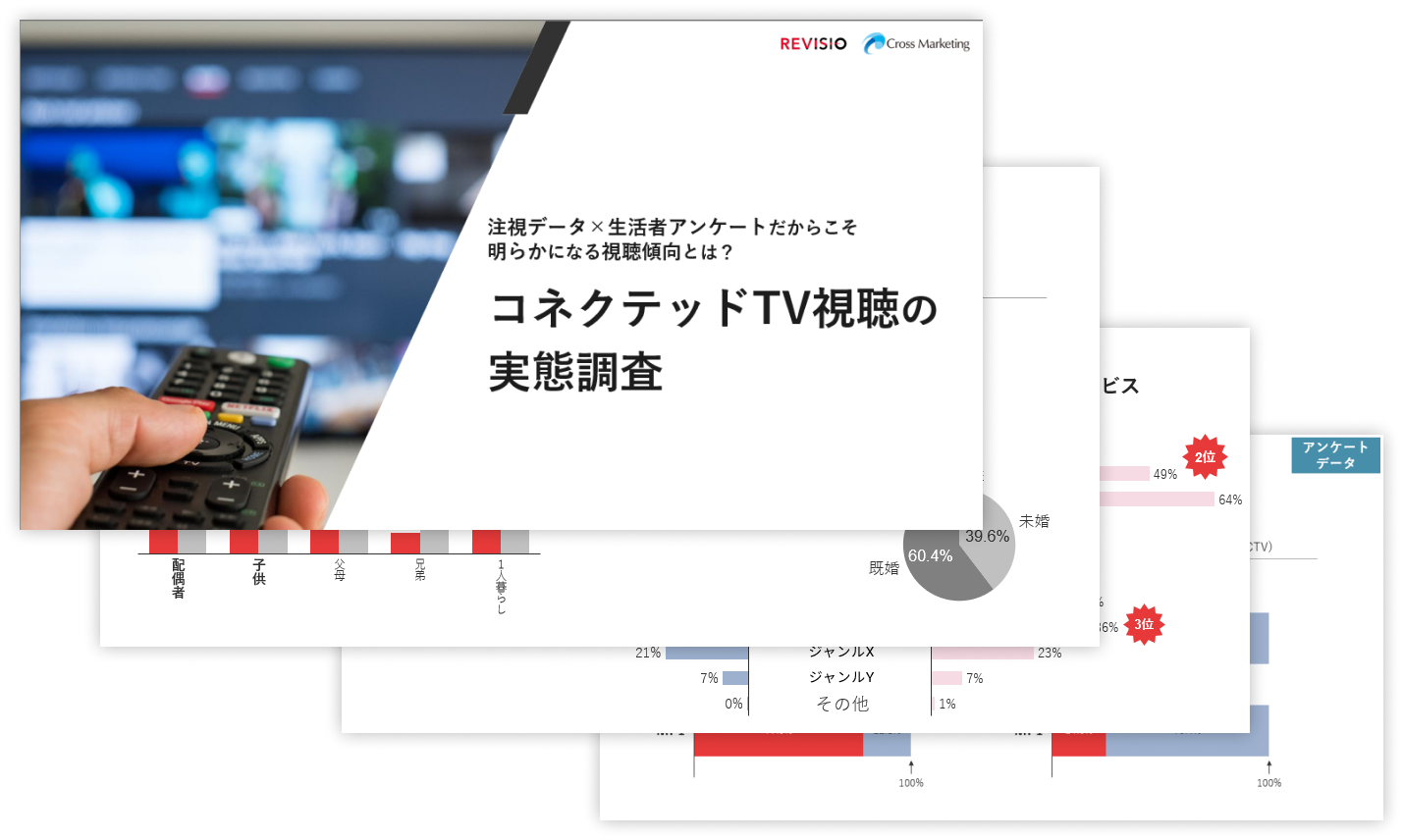 株式会社クロス・マーケティング(本社:東京都新宿区 代表取締役社長兼CEO:五十嵐 幹、以下「クロス・マーケティング」)は、ご家庭に人体認識技術を搭載した機器を設置しテレビスクリーンへの「注視」を測るREVISIO株式会社(本社:東京都千代田区、代表取締役:郡谷 康士、以下「REVISIO」)と、コネクテッドTVの視聴傾向について研究結果をまとめた資料「コネクテッドTV白書2023」を共同で発表いたします。