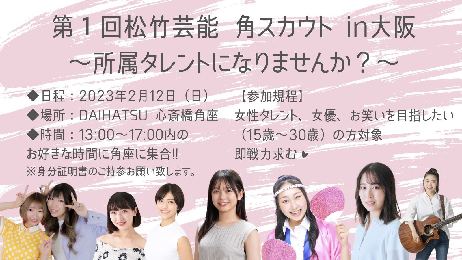松竹芸能の劇場「DAIHATSU 心斎橋角座」にて、2月12日(日)にスカウトイベントを開催することが決定致しました!!