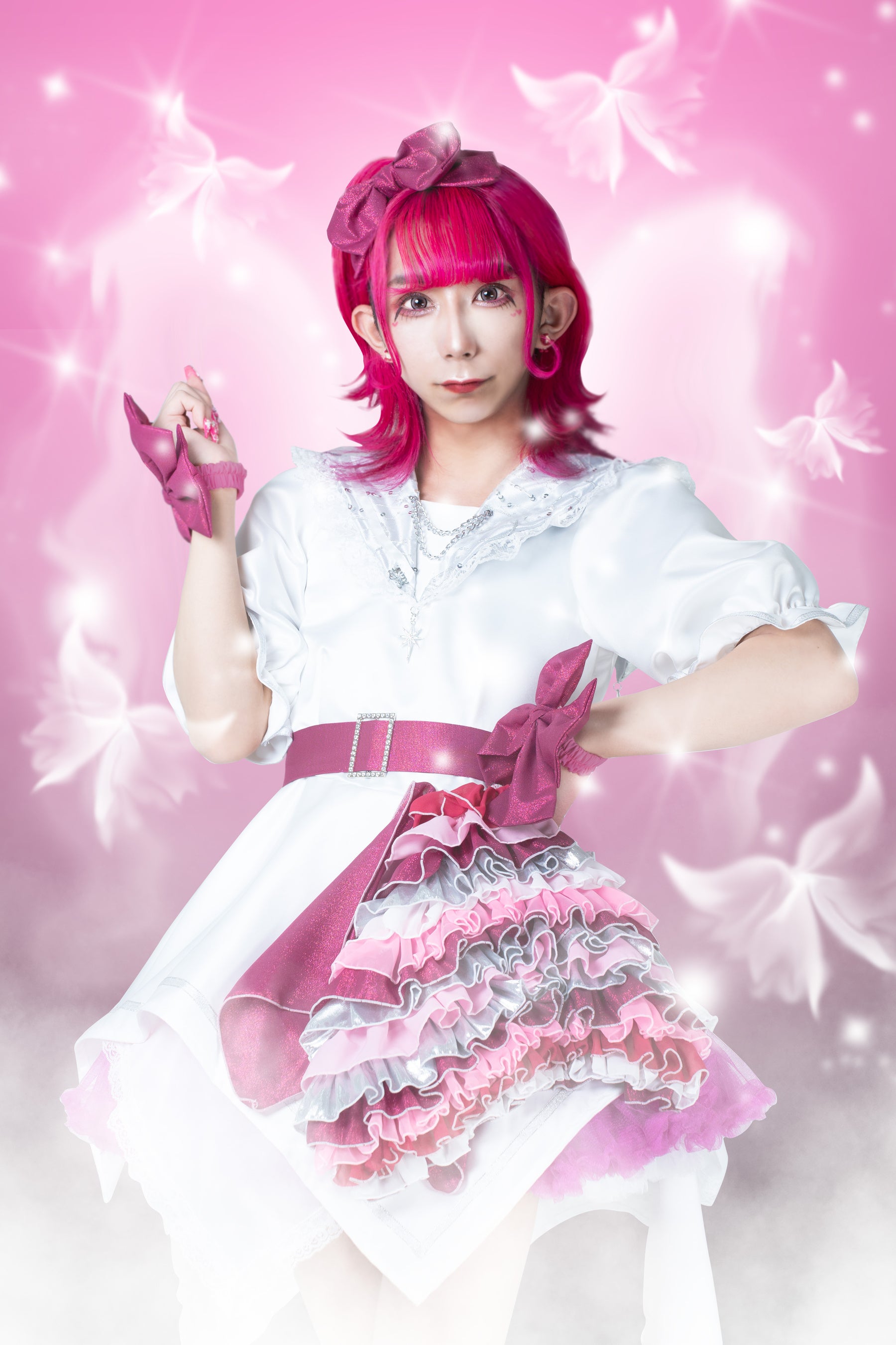アピールポイント:メイクです!メンズメイクから可愛いメイク、特殊メイクまで施せます!!衣装は絶対後ろ丈が長いスカートを使っていて、ふわふわにしてます!