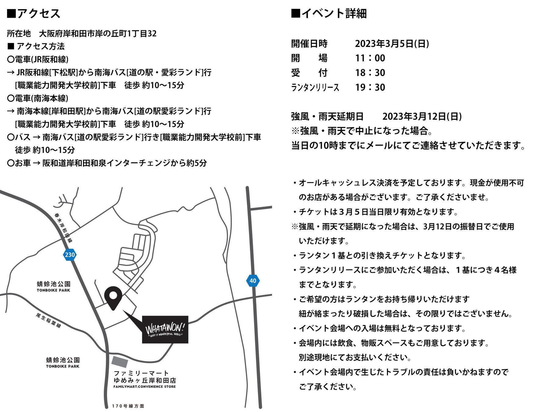 ■ 日程:3月5日(日)開場 11:00 / 受付 18:30 / ランタンリリース 19:30