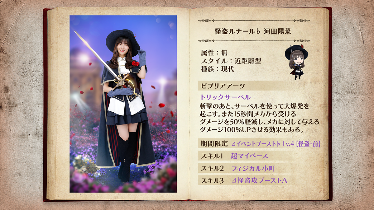 今回イベント報酬にはメンバーカード「★4 怪盗ルナール♭ 河田陽菜」が登場!