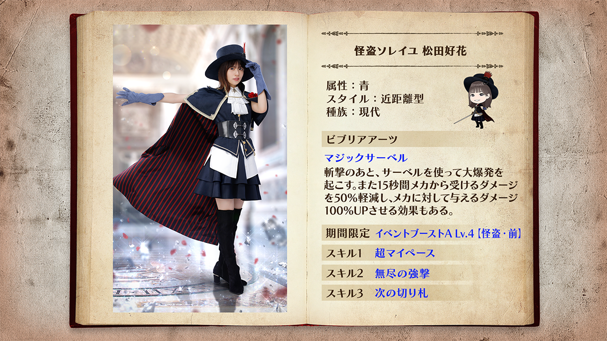 「★4 怪盗ルナール♭ 河田陽菜」はパーティ内の「怪盗ソレイユ」と「怪盗ルナール」ユニットを強化する効果持ち!