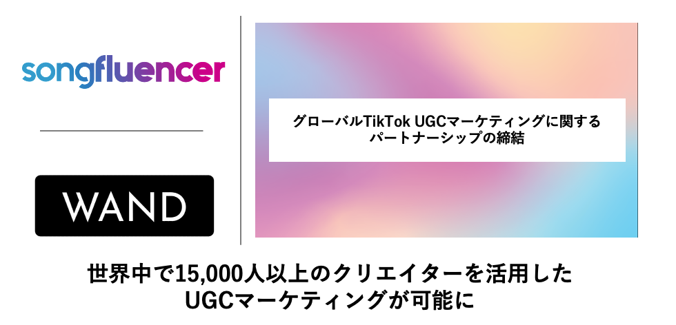 1,200人以上のクリエイターと提携する国内最大規模のTikTokクリエイターネットワーク『LUMOS』運営の株式会社WAND(ウォンド)は、Bruno Mars、Ed Sheeran、Harry Styles、The Rolling Stonesなど、あらゆる規模のアーティストの4,000以上のグローバル楽曲プロモーションを支援する音楽特化型のインフルエンサー会社のSongfluencer社との提携を発表しました。