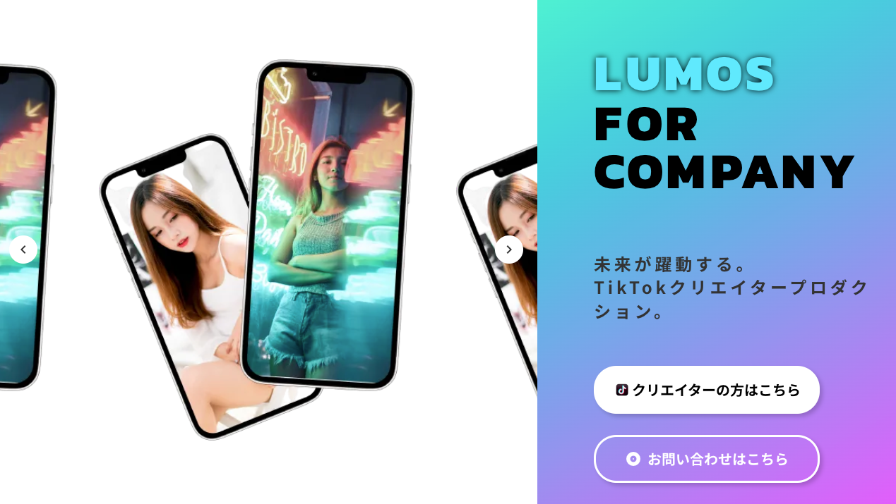 ▼1,200人が登録する国内最大級のTikToker MCN『LUMOS』