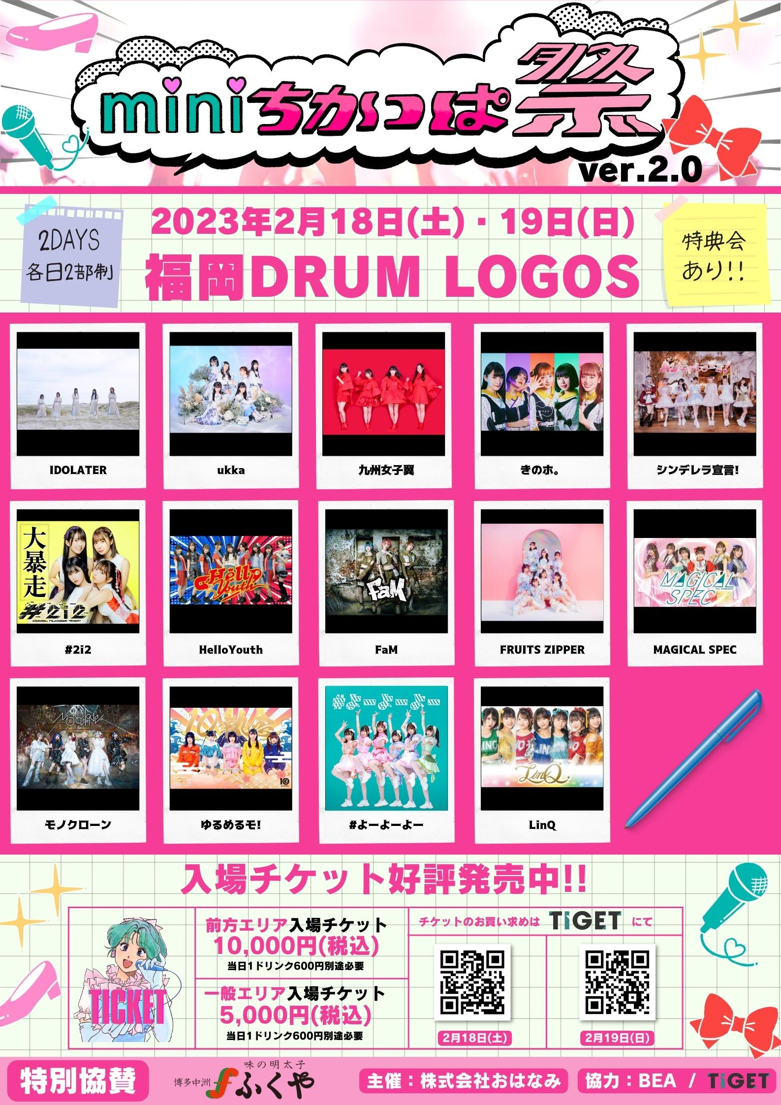 2023年2月18日(土)・19日(日)に福岡DRUM LOGOSにて、全国のアイドルが福岡に集うライブイベント『miniちかっぱ祭ver.2.0』が開催されます。