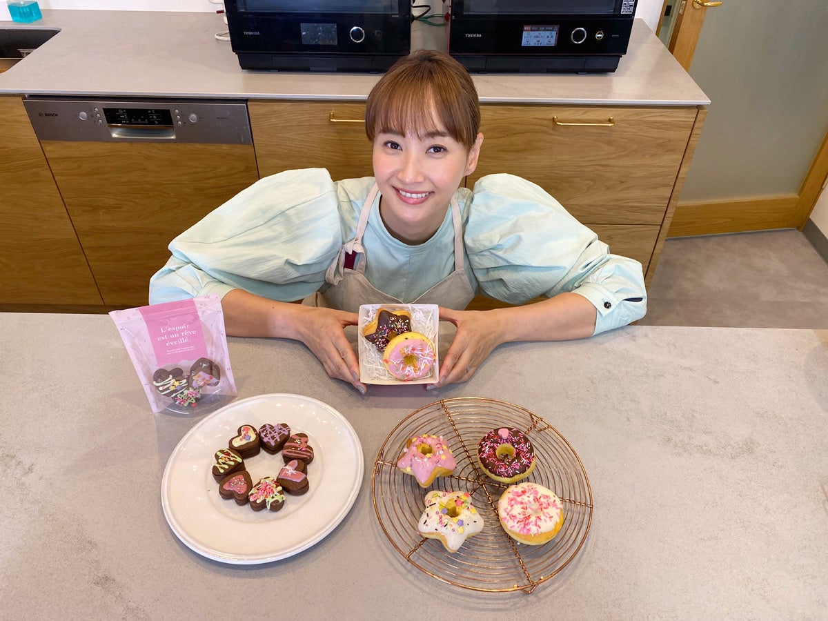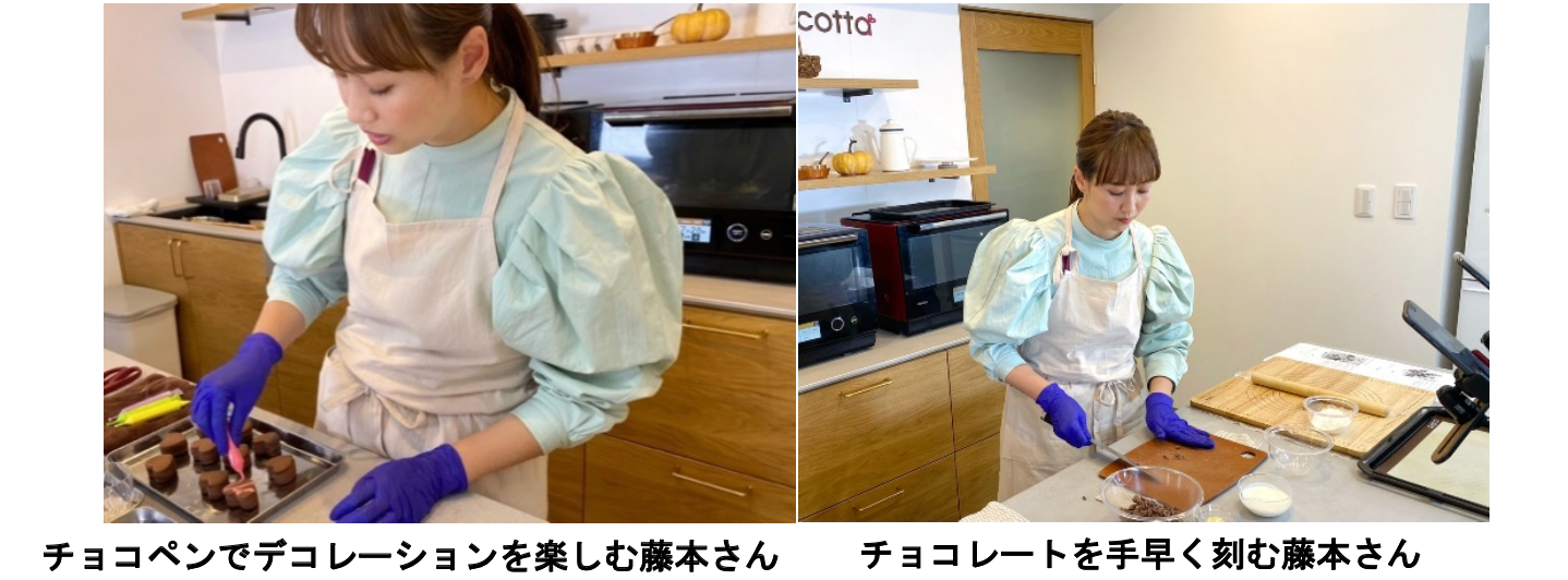 ライブ配信では、タレントの藤本美貴さんにDAISOで販売しているcotta監修のミックス粉(2種)を使用した「生チョコ風クッキーサンド」「焼きドーナツ風マドレーヌ」のバレンタインレシピ2品を実演していただきました。