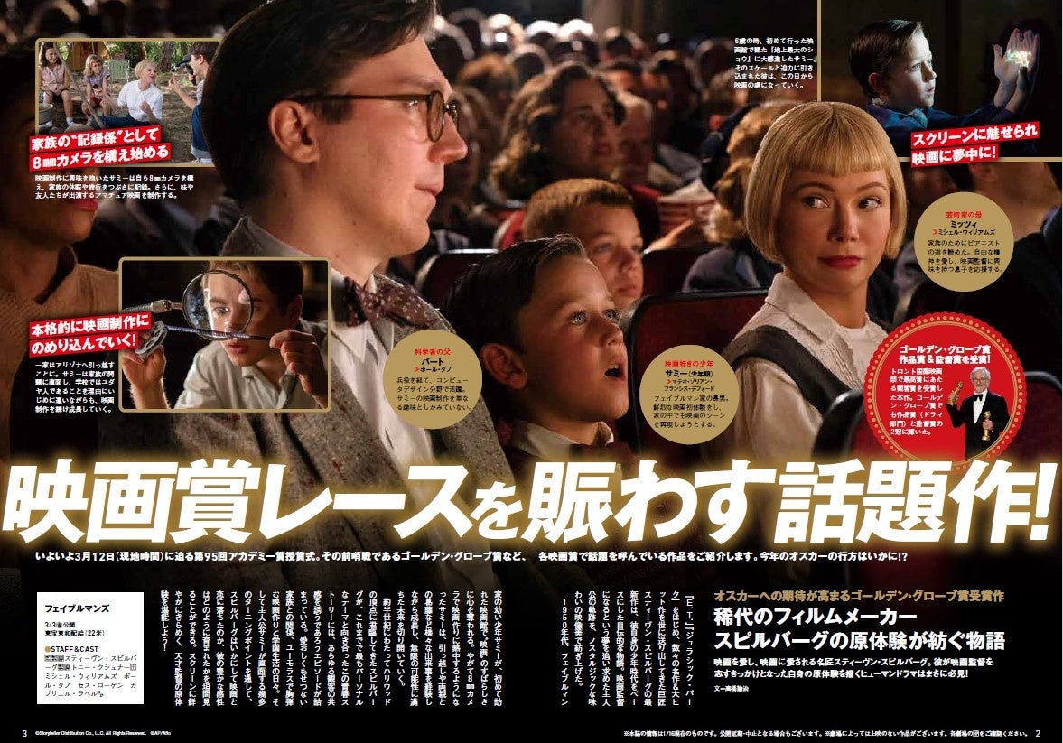 今号では、巨匠スティーヴン・スピルバーグの自伝的映画『フェイブルマンズ』を大特集! 3月のアカデミー賞授賞式前に、賞レース注目の作品を一挙紹介します。また、ディズニー最小のヒーロー・アントマン最新作の公開前に見たい、「アントマン」超簡単まとめ特集もお見逃しなく! 映画選びの参考に活用いただける1冊です。