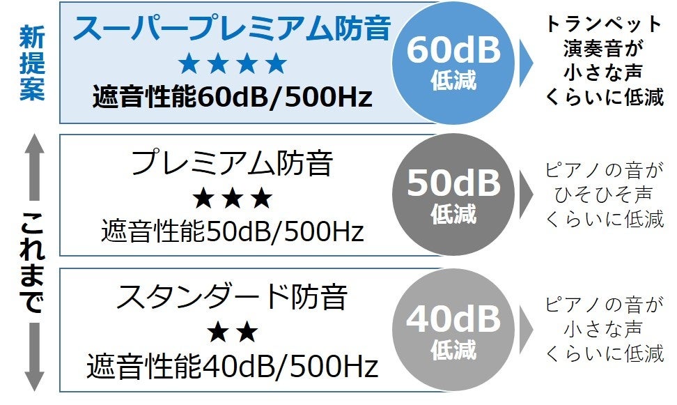 - 『スーパープレミアム防音』★★★★ 遮音性能60dB/500Hz