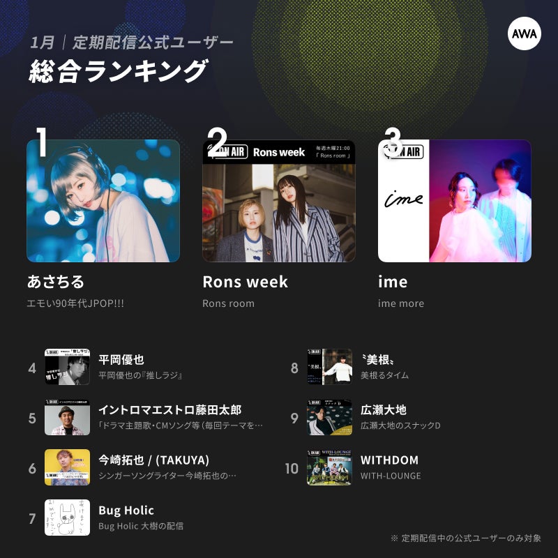 ■2023年1月定期配信AWAラウンジ人気ランキングTOP10
