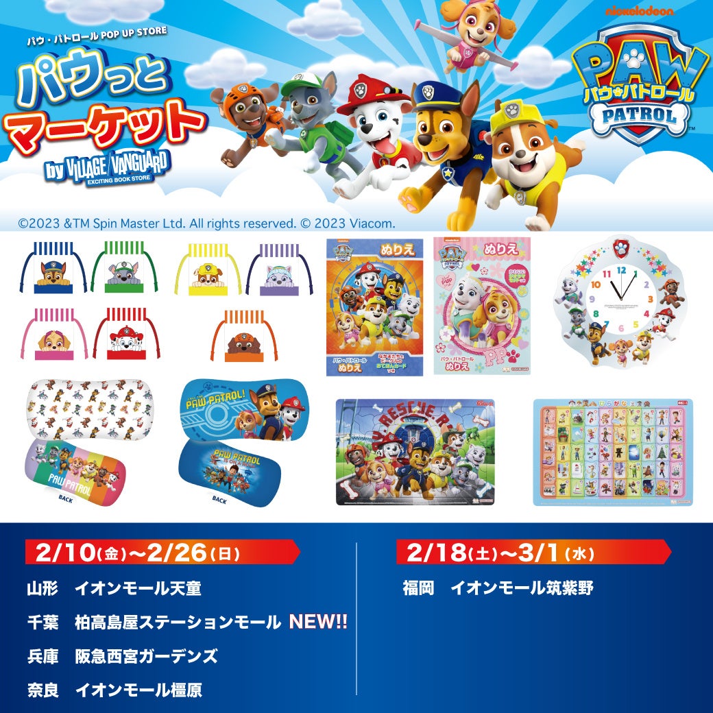 遊べる本屋ヴィレッジヴァンガードがプロデュースするパウ・パトロール初のPOP UP STORE『パウっとマーケット -by VILLAGE VANGUARD-』は、昨年の夏からスタートして日本全国のショッピングセンターを巡回している、大好評のPOP UP STOREです。