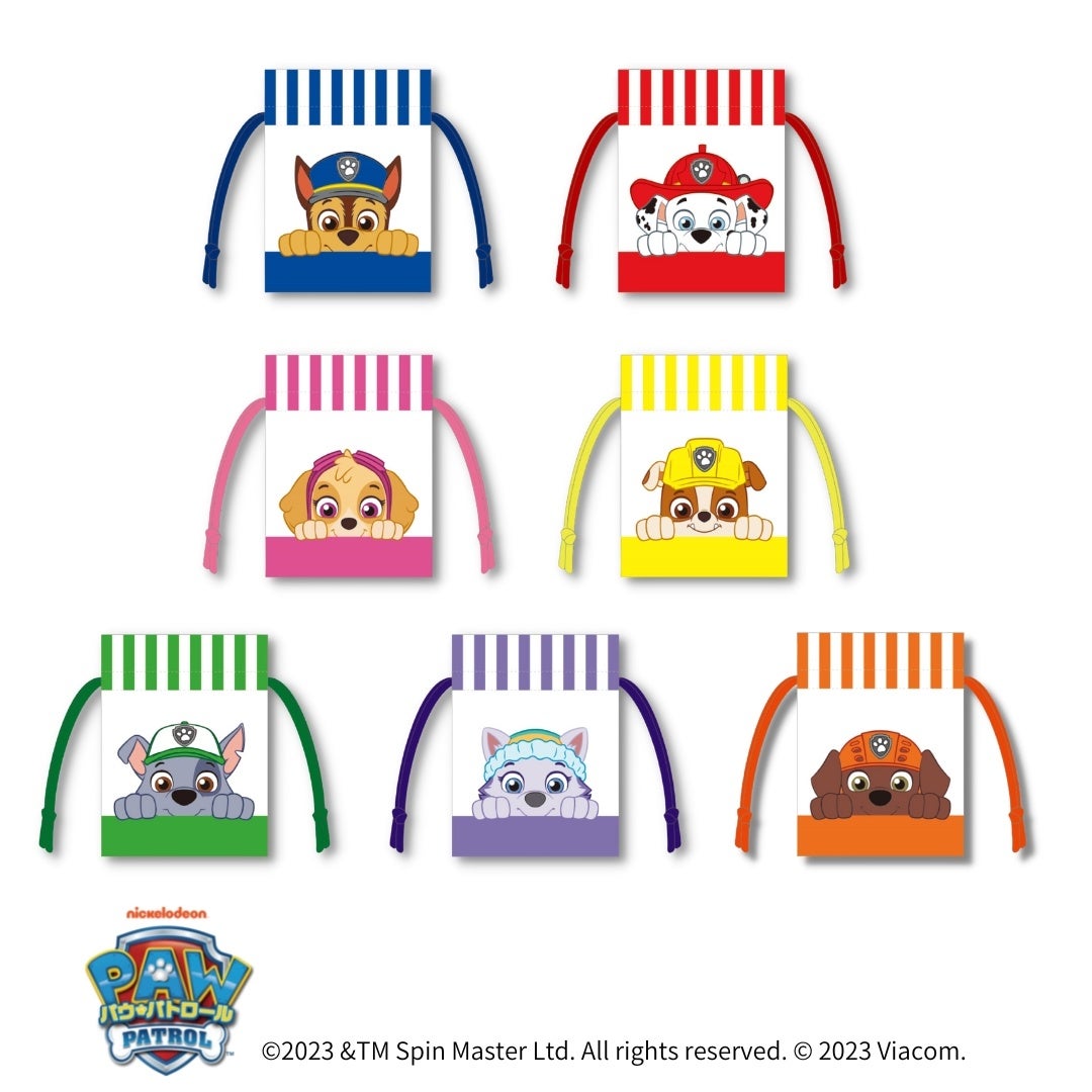 ・ミニ巾着 パウ・パトロール(チェイス/マーシャル/スカイ/ラブル/ロッキー/エベレスト/ズーマ):各605円(税込)