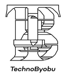 このTechnoByobuのロゴは音楽家、アーティストとしてYMOとならび1970年代末からテクノを実践してきた立花ハジメ氏(ソロのほか、プラスチックス、Hmなど)によるものです。立花ハジメ氏は1970年代からグラフィック・デザイナーとしても活躍されていて、これまで多くのグラフィック作品、舞台美術、ロゴ・デザインを手がけています。