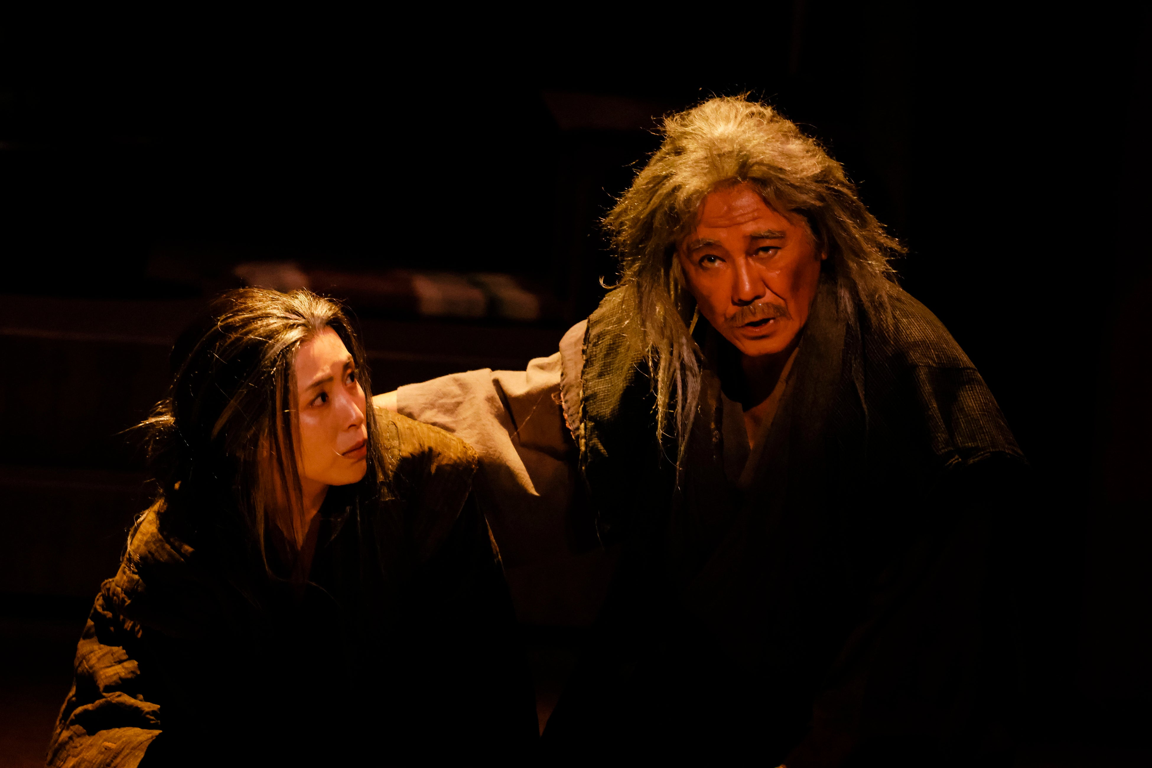 西岡の“北斎”の迫力もすごいが、お栄を演じる雛形も負けてない。宮本は「雛形さん、すごいよ。大竹しのぶさんに近い凄さがあって、入り込んだらガガガガガガって感じなんです。『この人はすごい女優さんだな』って改めて思いました」と絶賛。実は西岡が雛形との共演を望んだという。西岡が「10代の頃に初めて共演して、この子はいい女優になるなって思ってました」と共演が叶ったことを喜んだ。