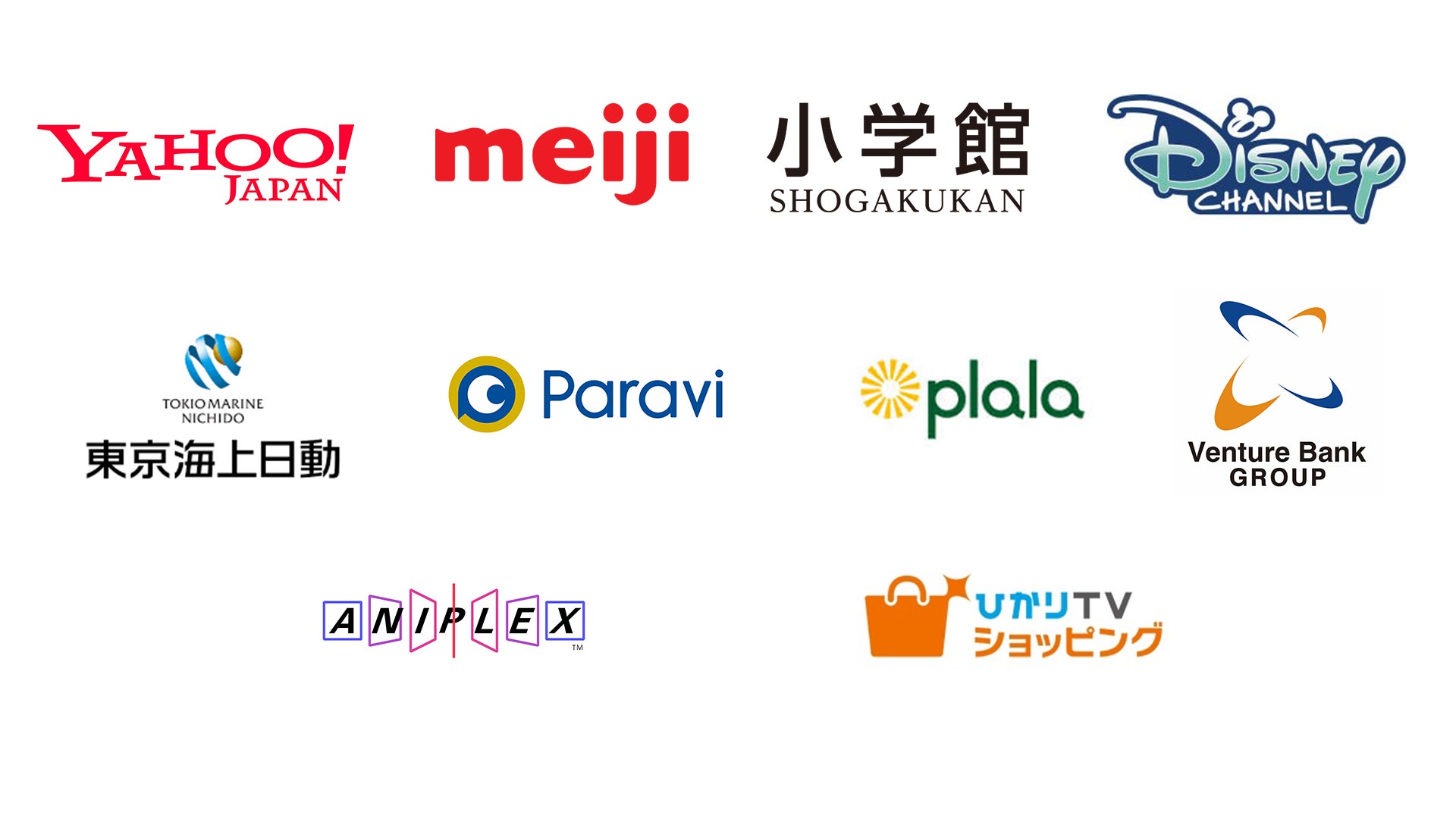 Yahoo!、明治、小学館、ディズニー、東京海上日動、Paravi、plala、Venture Bank、ANIPLEX、ひかりTVショッピング