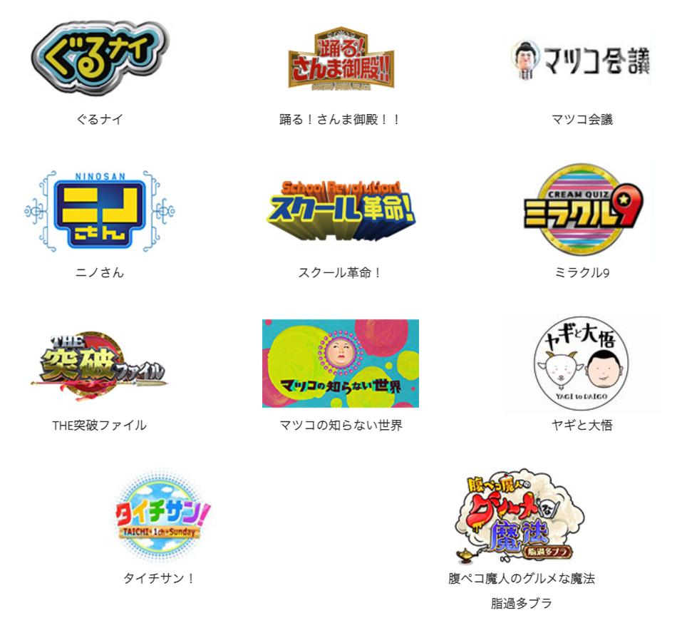 ・日本テレビ「ぐるぐるナインティナイン」「踊る!さんま御殿!!」「マツコ会議」「ニノさん」「スクール革命!」「THE突破ファイル」