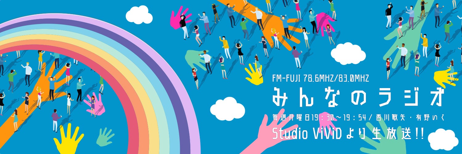 「みんなのラジオ」は、これから始まる一週間を元気に過ごせるよう、楽しいトークをお届けするラジオ番組です。FM FUJIにて毎週月曜19:30-19:54に生放送されています。