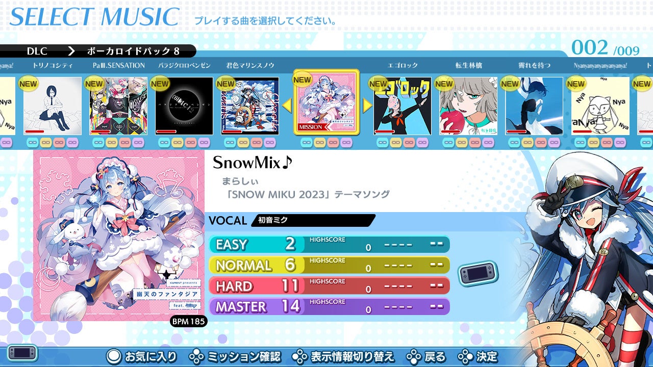 「ボーカロイド パック8」は、SNOW MIKU 2022のテーマソング「君色マリンスノウ」やSNOW MIKU 2023のテーマソング「SnowMix♪」など雪ミク(初音ミク)の人気楽曲を含む10曲と「雪ミク(SNOW MIKU 2022 Ver.) 」、「雪ミク(SNOW MIKU 2023 Ver.)」のボイスつきナビゲーター2種、雪ミクとラビット・ユキネアバター4種がセットになったダウンロードコンテンツとなっております。