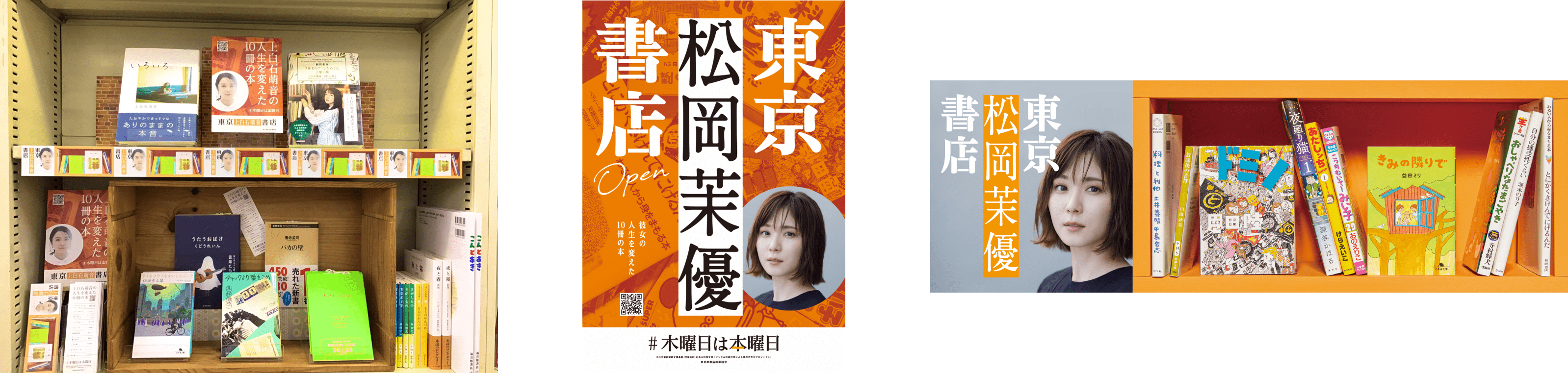 さらに、東京都書店商業組合に加盟する約180の書店にて松岡さんの選書本を紹介・販売してまいります。店頭ポスターやのぼりを各店舗に設置するほか、購入特典として選書していただいた本棚をイメージした「#木曜日は本曜日 しおり」の店頭配布など、様々な取り組みを通じて本屋を盛り上げてまいります。