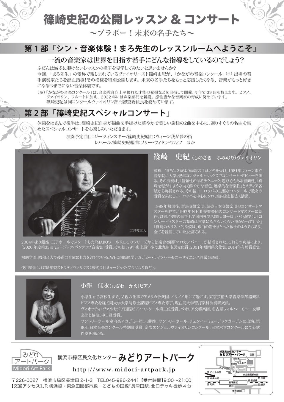 『篠崎史紀の公開レッスン&コンサート ~ブラボー!未来の名手たち~』