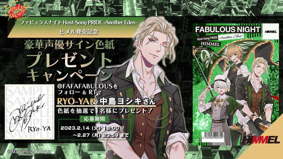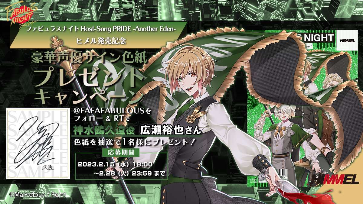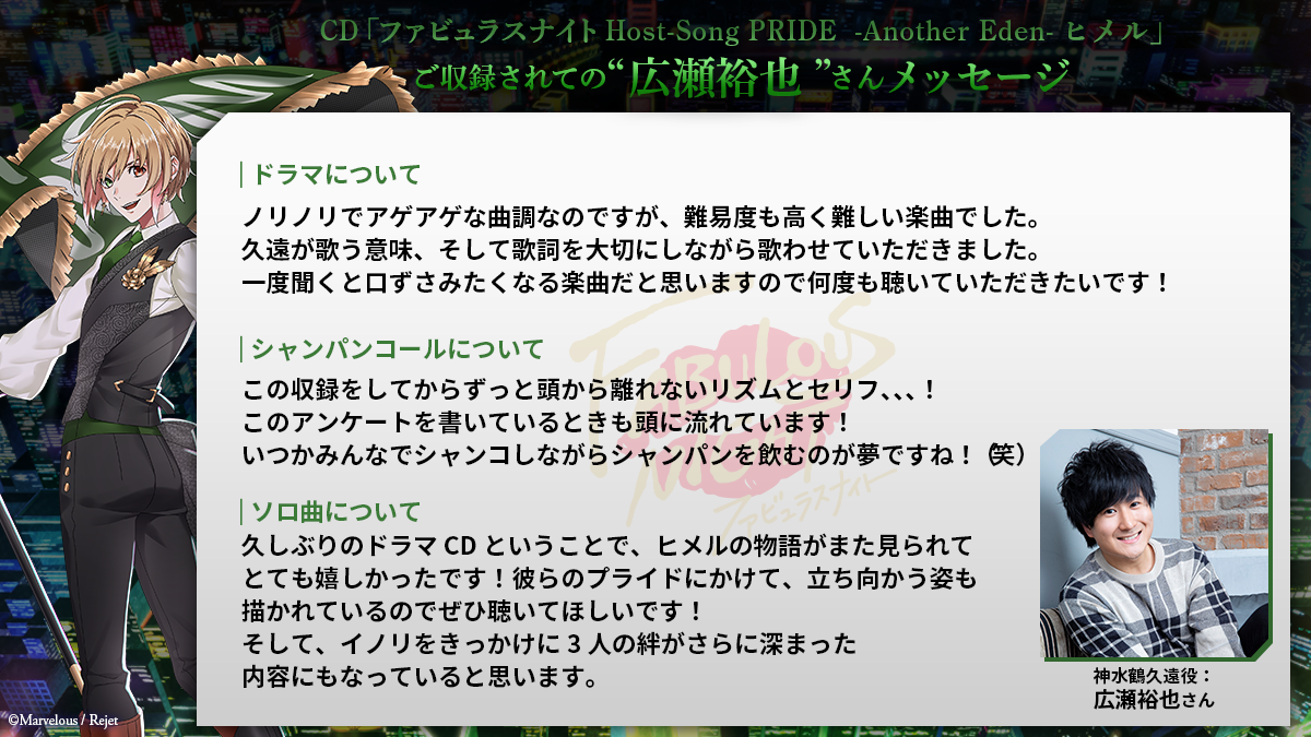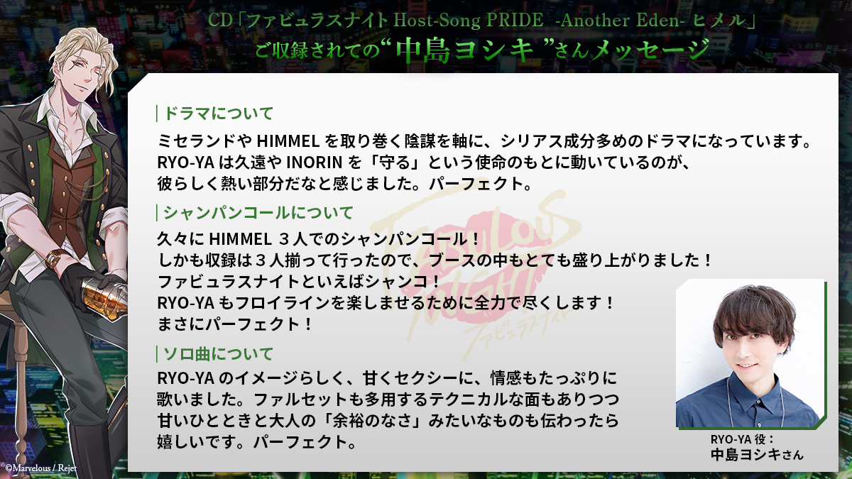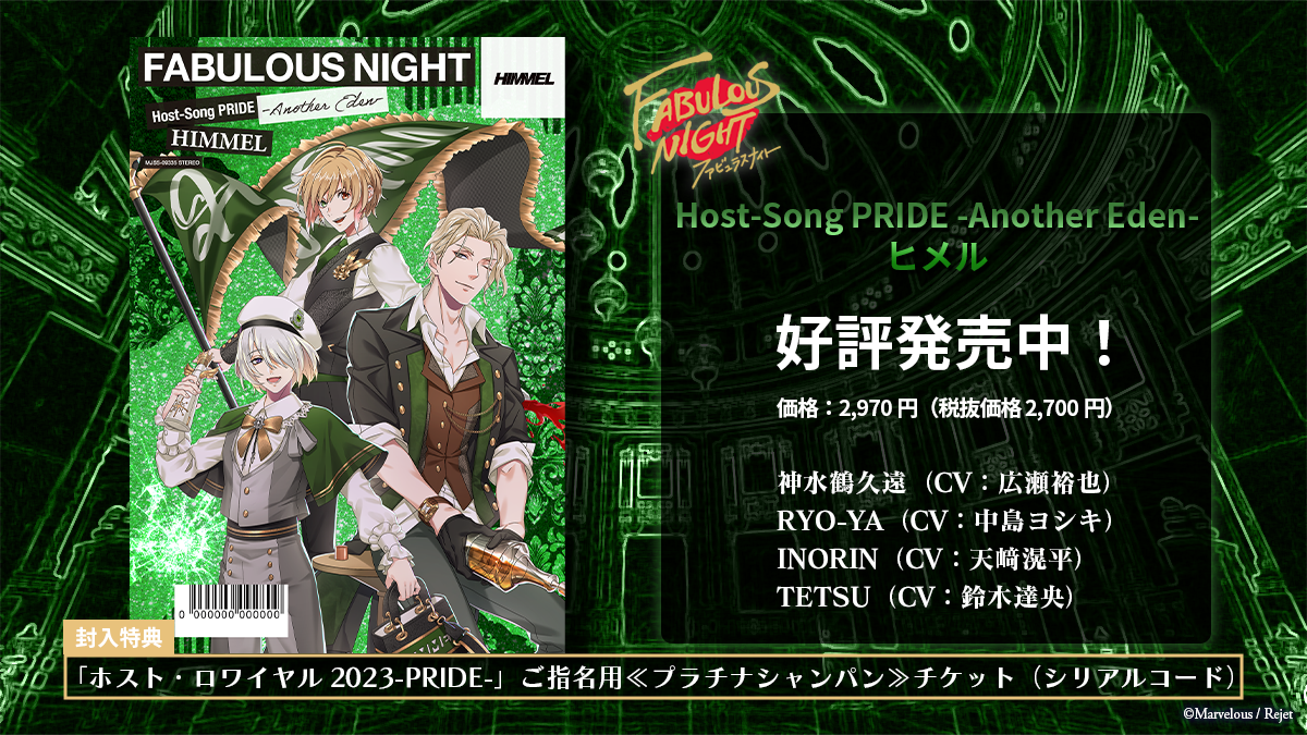 「ファビュラスナイト Host-Song PRIDE -Another Eden-ヒメル」がリリース!!