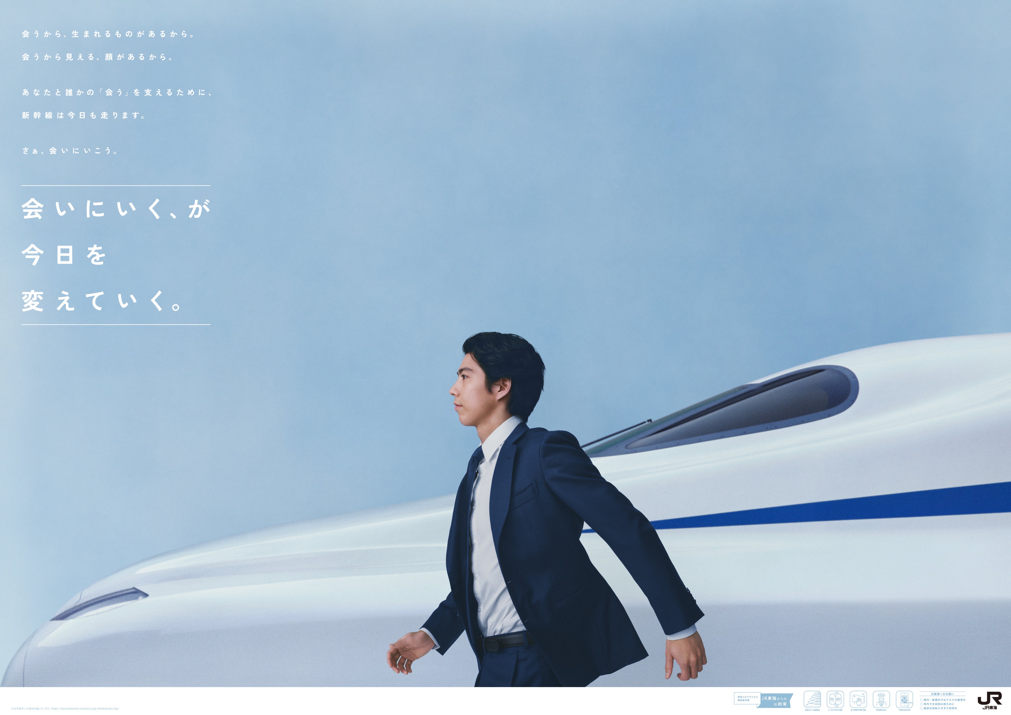 昨年、「会うって、特別だったんだ。」をキャッチコピーに展開した、働く人の「会う」を応援するキャンペーン。本年は賀来賢人さんにご出演いただき、キャンペーンを開始します。コロナ禍を経て、社会が変わりゆくなかでも「会うこと」の意義は変わりなく、「会うことで生まれる価値がある」、「会うことで築ける関係がある」ことを伝えるため、「会いにいく、が今日を変えていく。」をメインメッセージに据えました。TVCMでは新幹線での出張、そしてその先で直接会う様子をいくつもの視点から描き、働く人の代表として賀来賢人さんに演じていただきました。
