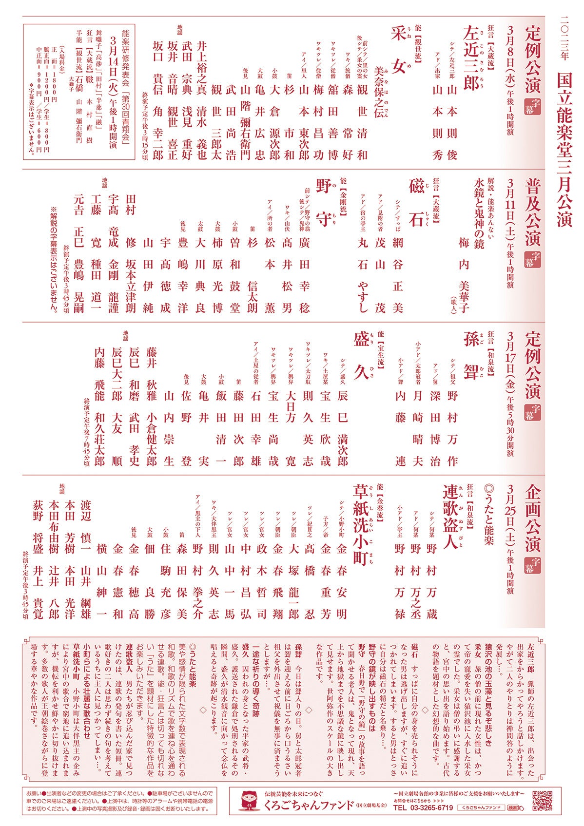 3月企画公演 連歌盗人・草紙洗小町 / 2023年3月25日(土)午後1時開演