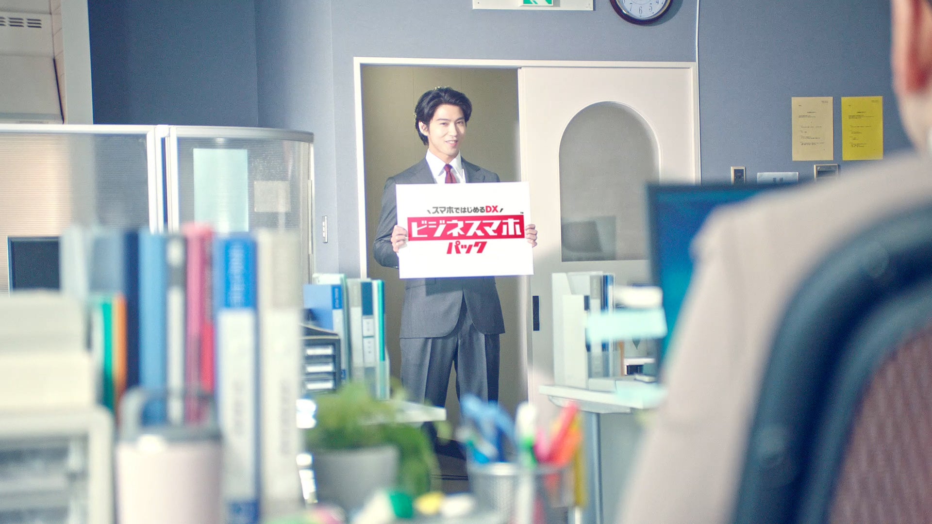一点の曇りもない、賀来賢人さんの誠実な眼差しで「ビジネスマホパック」の安心感を描いたCMをぜひお楽しみください。なお、本日よりWebで開始し、3月よりTVCMも展開する予定です。