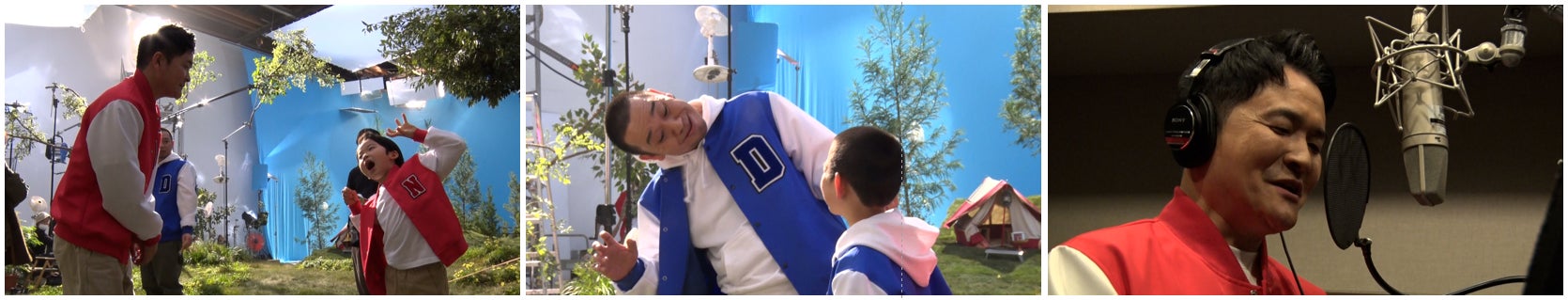 撮影は、千鳥と小千鳥4人そろって行われました。ダンスを練習する場面では、すぐに振り付けを習得した小千鳥が苦戦し続ける千鳥に教える姿が見られました。また、それぞれの表情を近づけるために千鳥の2人から小千鳥へ変顔のコツを伝授する場面もありました。