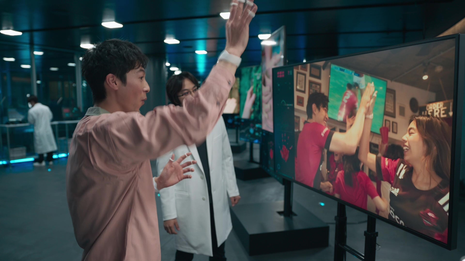 コトバにならない感覚までを共有できる時代が、ドコモが開発した触覚共有技術「フィールテック」によって、すぐそこまで来ているというこれまでにない未来を描き出したCMとなっています。