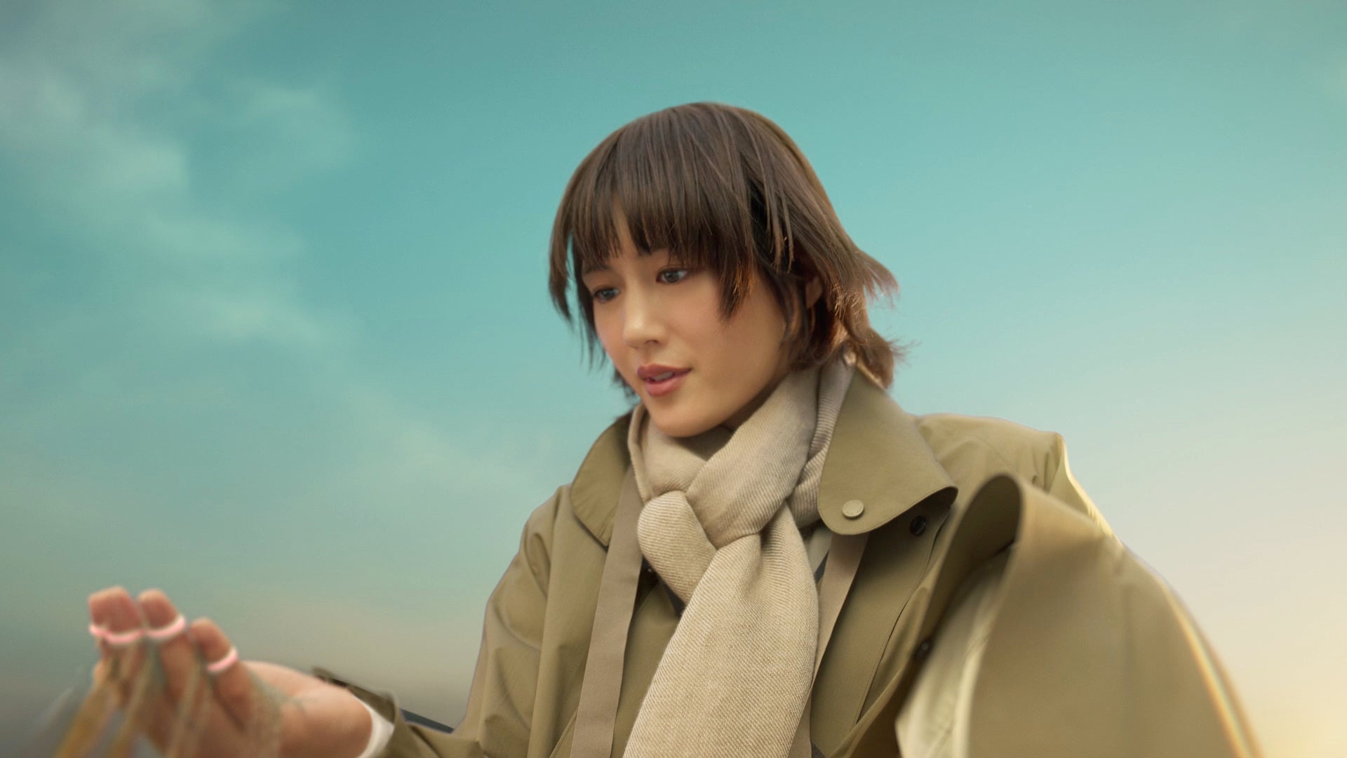 CM映像では砂漠を舞台にした砂を手に取るシーンの撮影が行われたのは、寒空の屋外。自身も寒いはずの撮影にも関わらず、スタッフが寒くないように気を使う優しさが印象的でした。