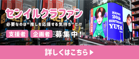 今は、クラウドファンディングを活用して、同じ推しを応援する方々で出資金を募り「センイル広告」を出すことも増えてきています!