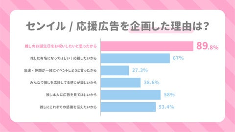 やはり、「とにかく推しの誕生日をお祝いしたかったから」という回答が1番多く見受けられましたが、「推しに有名になってほしい」「推し本人に広告を見てほしいから」などの回答も多い結果に!