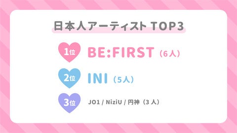日本人アーティストで推しランキング1位に輝いたのは「BE:FIRST」!