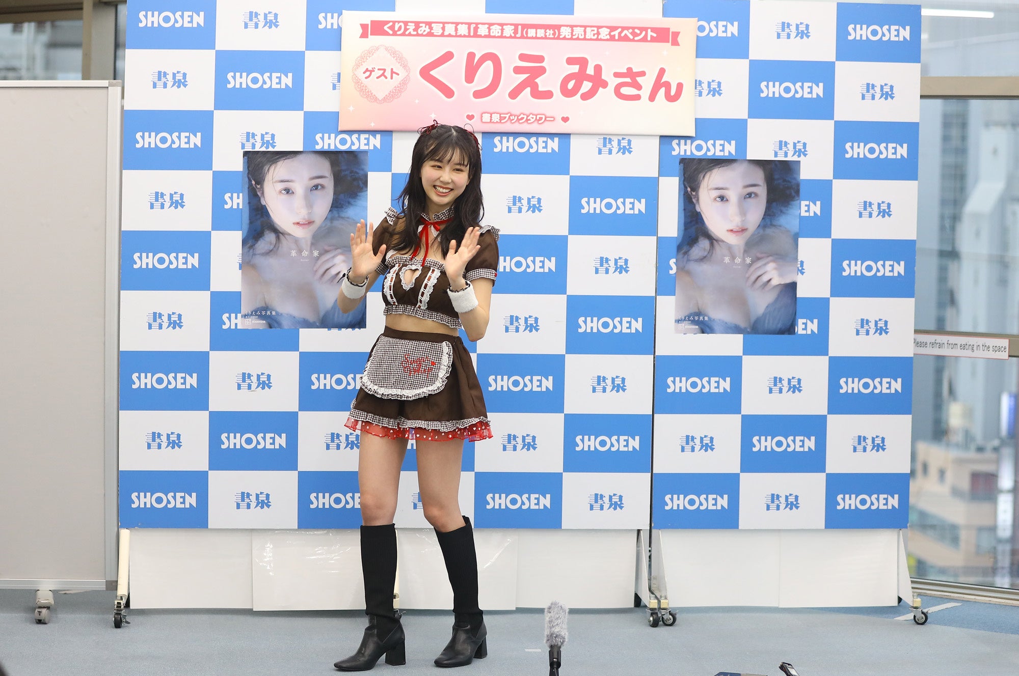 タレント・俳優・グラビアアイドル・会社経営者とマルチに活動しつつ、“フェチ天使” の異名を取るくりえみ(年齢非公表)が2月19日、秋葉原・書泉ブックタワーにて最新写真集『革命家』出版記念会見を開催。可愛らしいポーズを連発すると同時に、記者たちをも聴き入らせる熱のこもった弁舌で、写真集の魅力をアピールした。
