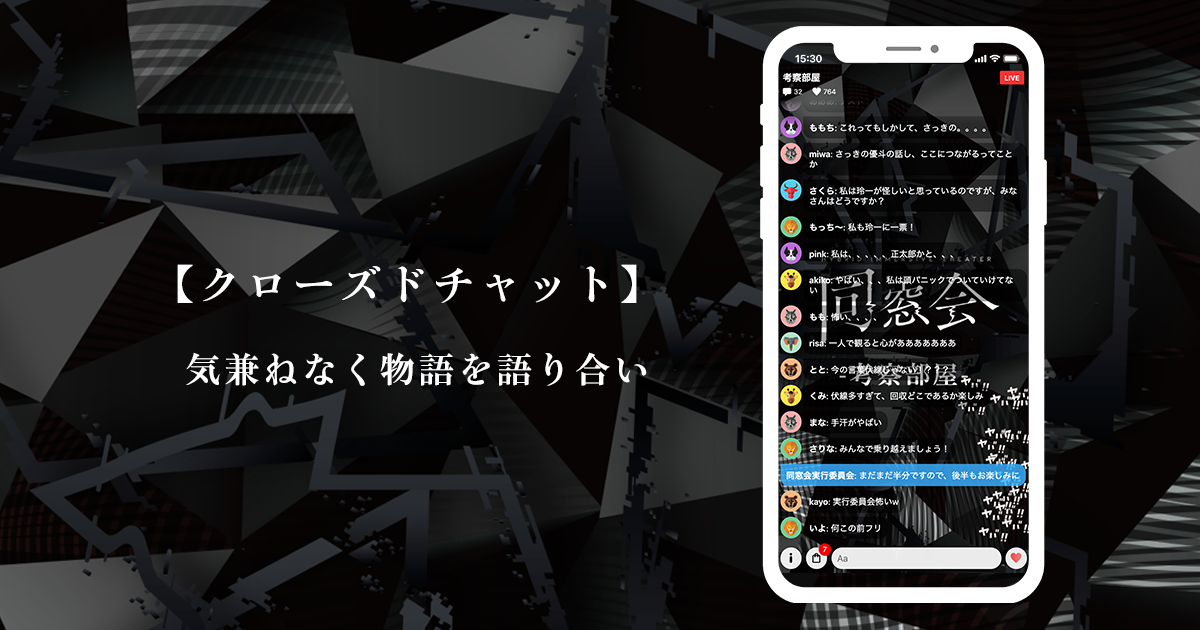 本作品は、謎が謎を呼ぶサイコサスペンスとなっています。そのため、同時に視聴しているユーザー同士が、気兼ねなく語らい合いながら盛り上がる場所として、クローズドなチャットルームを提供し、ウォッチパーティ形式での参加体験を提供します。