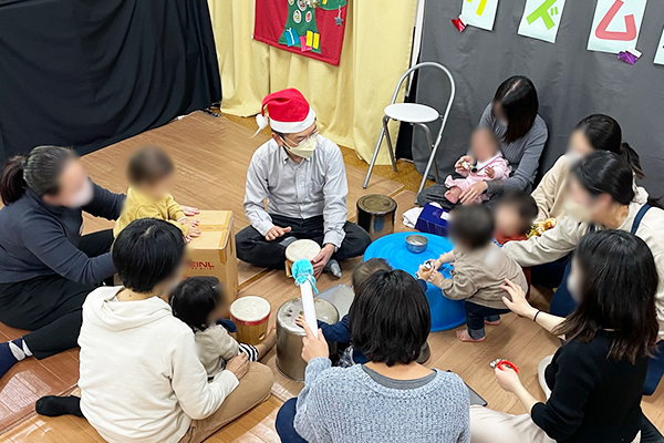 横浜市で総合ポピュラー音楽教室を運営する株式会社アダチ音研は、2022年12月13日(火)、横浜市にある特定非営利活動法人「さくらザウルス」が運営する子育て支援施設「さくらザウルス蒔田ひろば」が開催するイベントに、「なんでも太鼓リズム遊び」と題して親子で楽しむリズムイベントを開催しました。