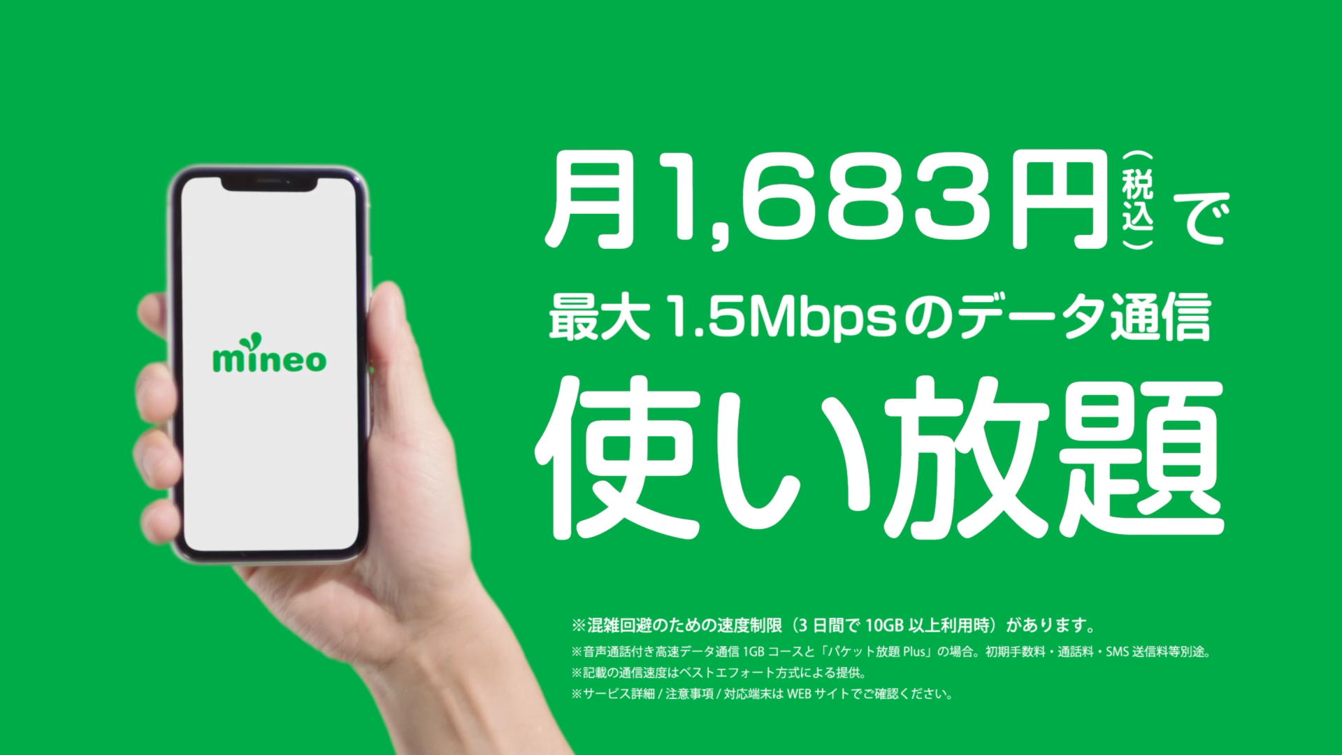 CMでは、オシャレを楽しみたい若者や、子育てしながらも互いに趣味を満喫したい夫婦、孫や旅行仲間など新たな生きがいを大切にしたいシニアの方、部活動や習い事を応援してくれる親の負担を少しでも減らしたい学生が登場。さまざまな世代の方々に向けて、mineoなら1,683円/月でおトクにデータ使い放題※になることをお知らせする内容となっております。ぜひご覧ください。