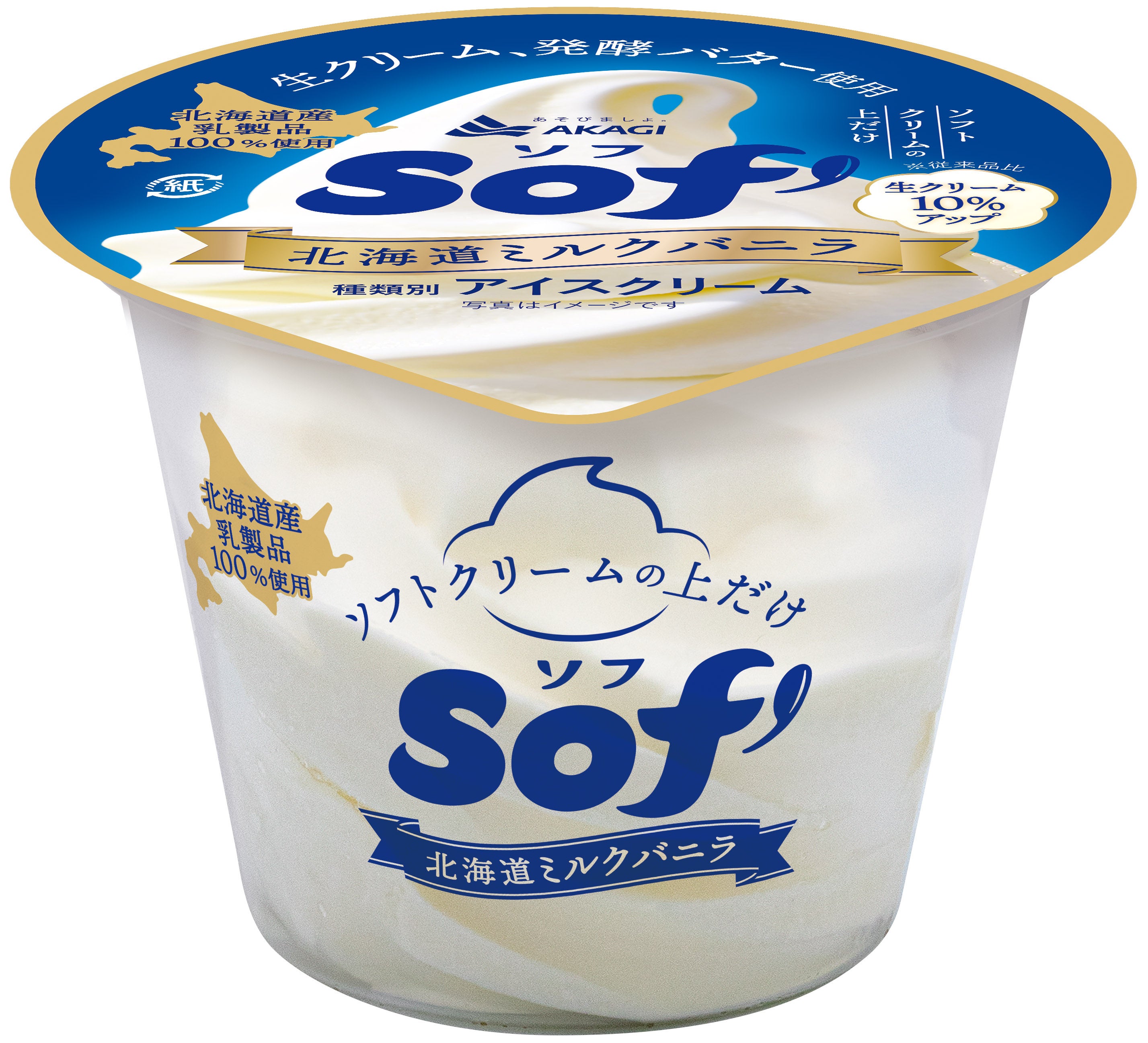 「Sof’(ソフ)北海道ミルクバニラ」は、北海道産生クリーム、北海道産発酵バターを中心に、乳製品は北海道産のみを使用し、ミルクの濃厚な味わいを堪能できるアイスクリームです。今回は、北海道産生クリームの配合量を10%増量(※1)し、より濃厚、かつさっぱりとした後味に仕立てました。