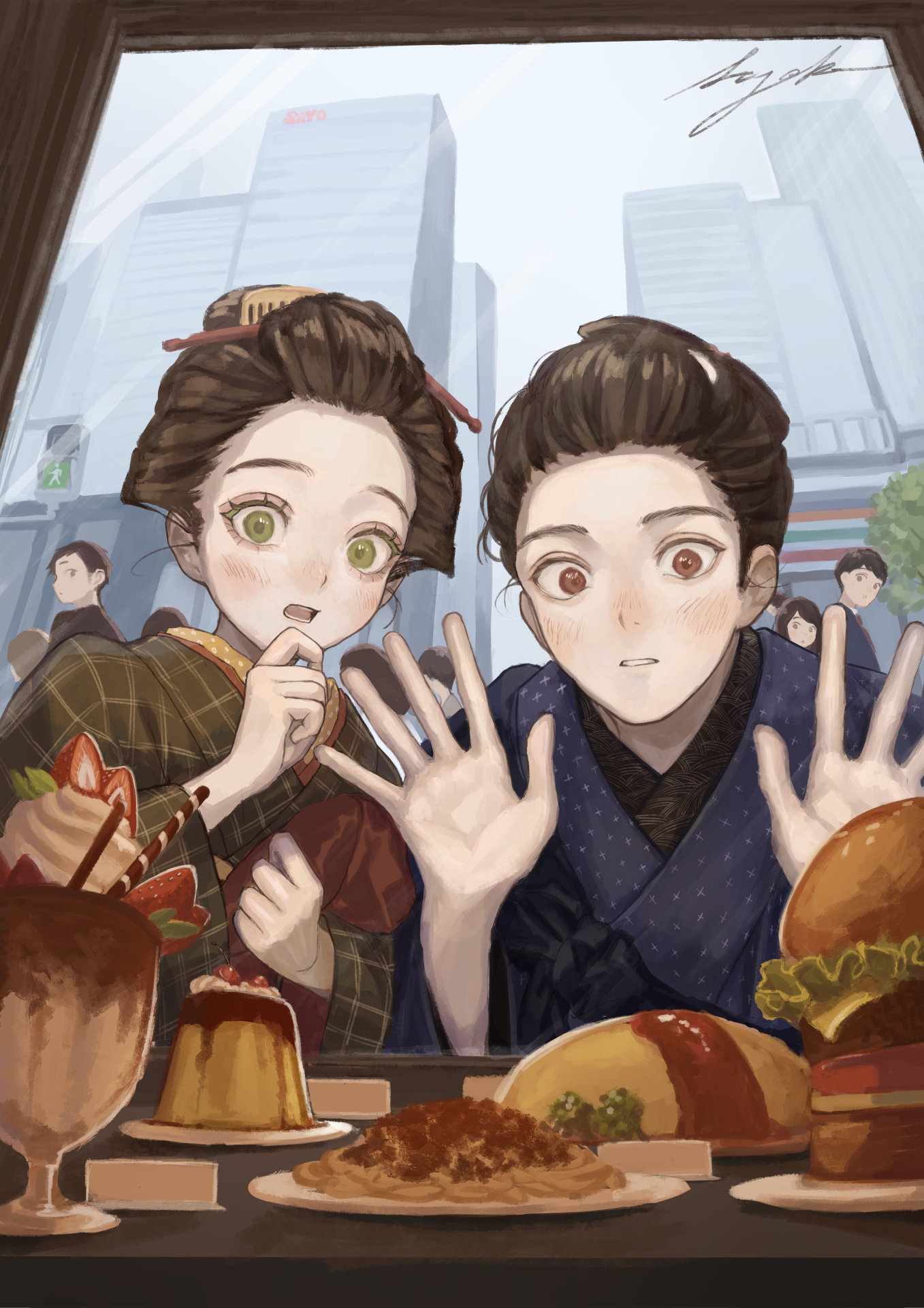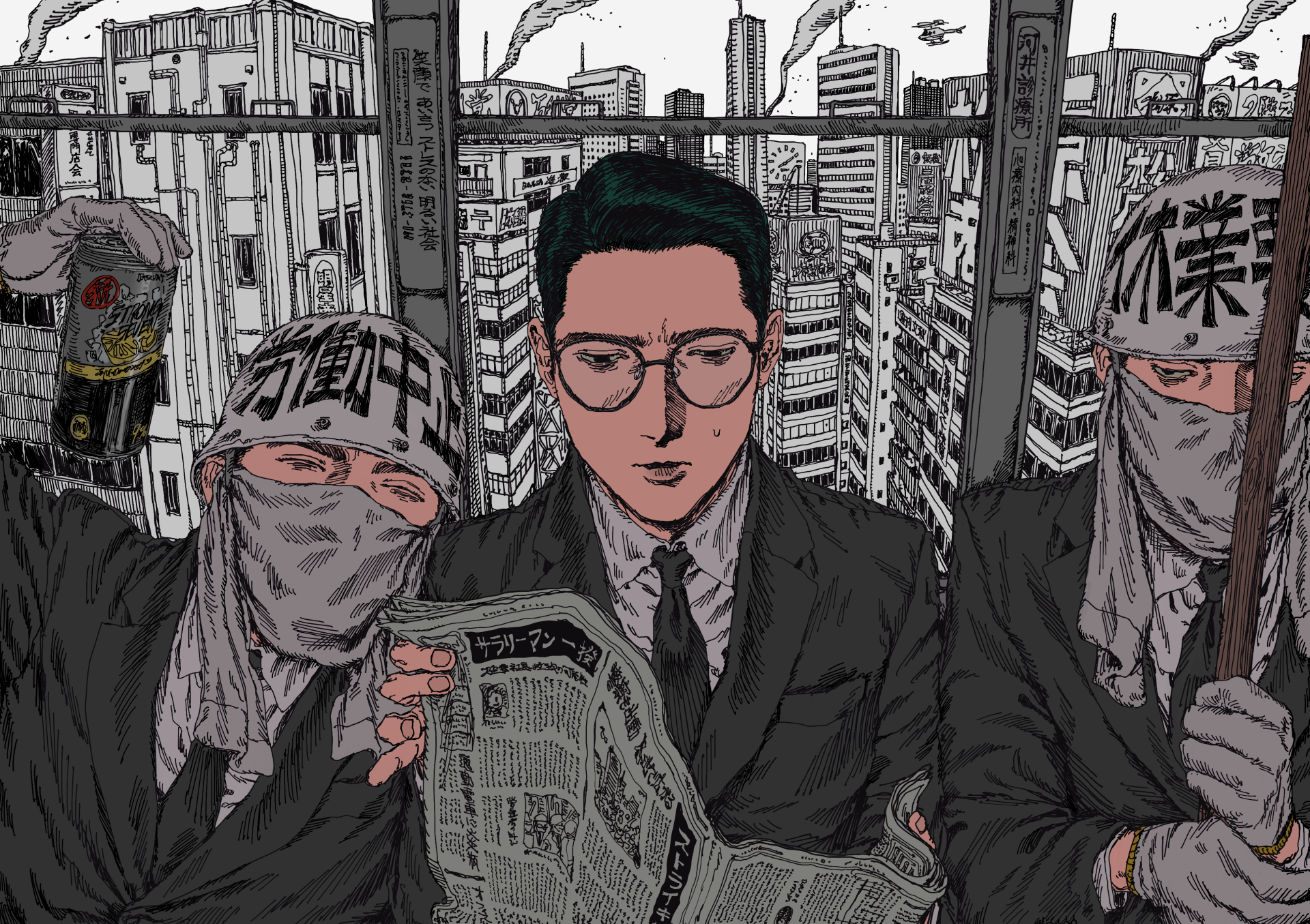 「かわいらしい作品が多い中、この作品の怖い雰囲気がバチッと目に止まりました。独特なコンセプトとインパクトの強さが強く印象に残る作品です。真ん中のサラリーマンが僕の相方の土屋、右にいるのが僕で合っていますか?」