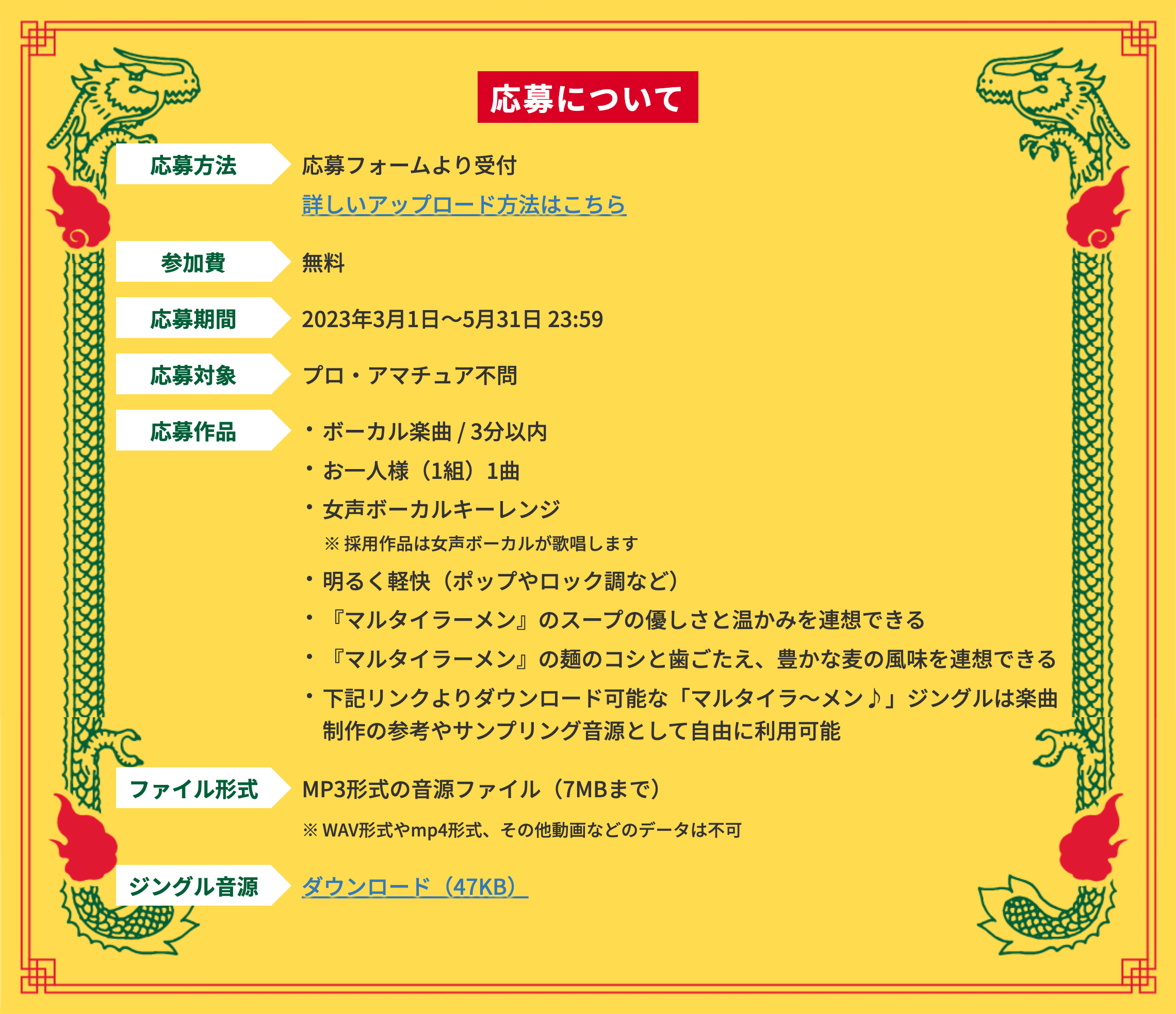 『マルタイラーメンのPR』を目的としたオリジナルソングのコンペティションです。
