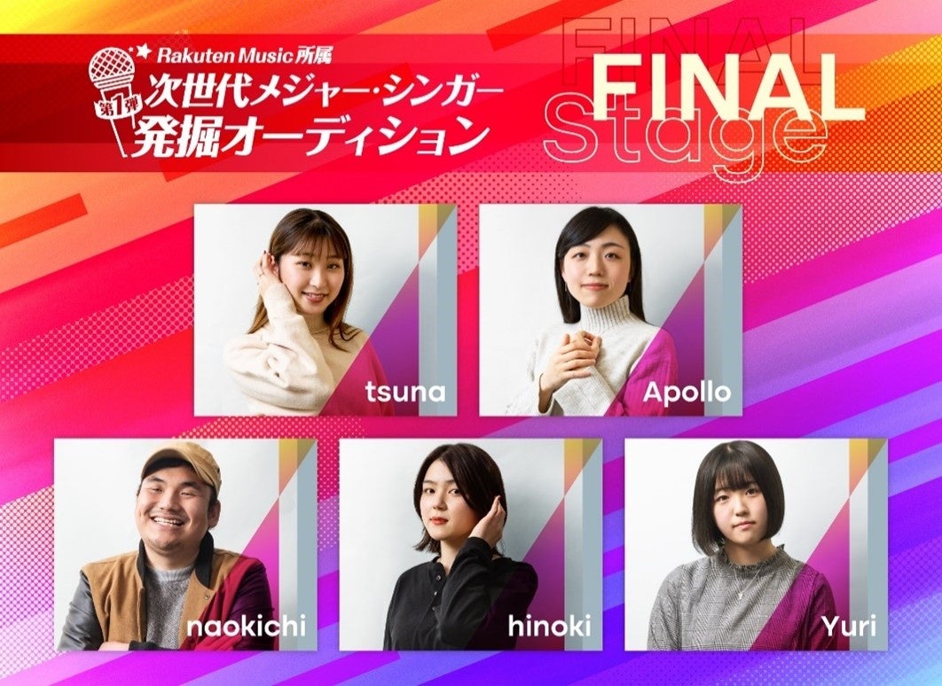楽天グループ株式会社(以下「楽天」)が運営する定額制の音楽聴き放題サービス「Rakuten Music」は、開催中の「Rakuten Music所属 第1弾 次世代メジャー・シンガー発掘オーディション」において、5名のファイナリストから1名のグランプリ受賞者を決定する「ファイナルラウンド」の投票を、本日より開始しました。