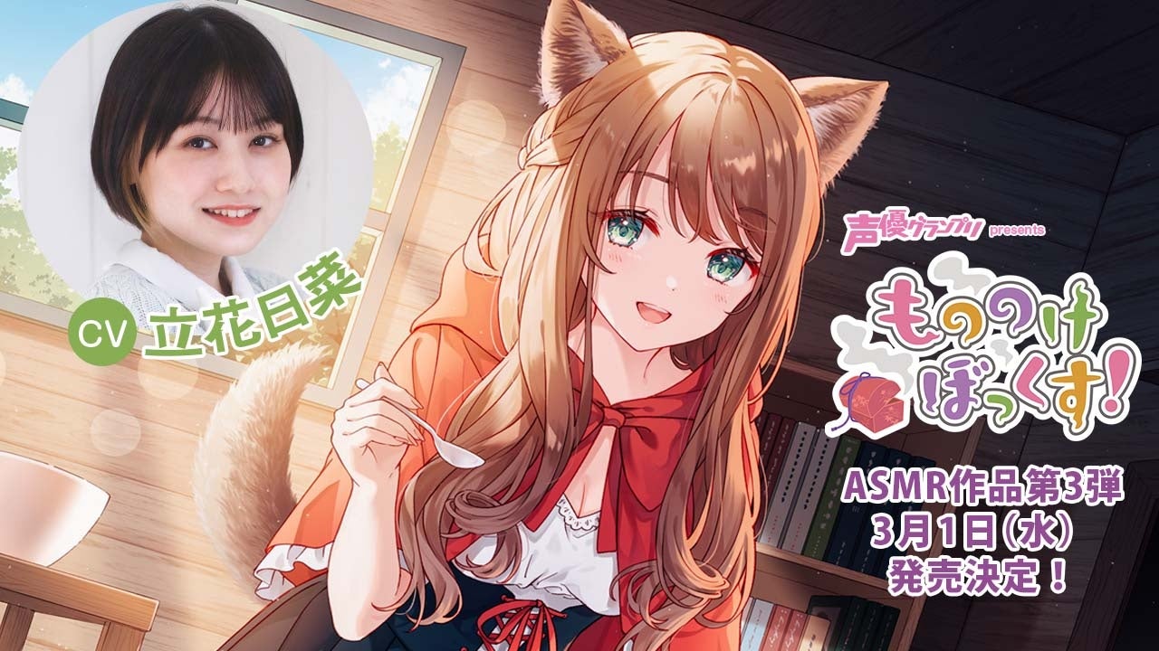 声優グランプリが手掛ける、不思議でかわいい”もののけ”たちとの心温まる交流を描いたASMRシリーズ『もののけぼっくす!』。長縄まりあさん、本渡楓さん出演の第1弾・第2弾に続き、立花日菜さんがちょっぴりいじわるな狼少女・グレッタを演じる第3弾『狼少女は大好きなお兄さまをSっ気たっぷりに癒やしたい』が発売中!