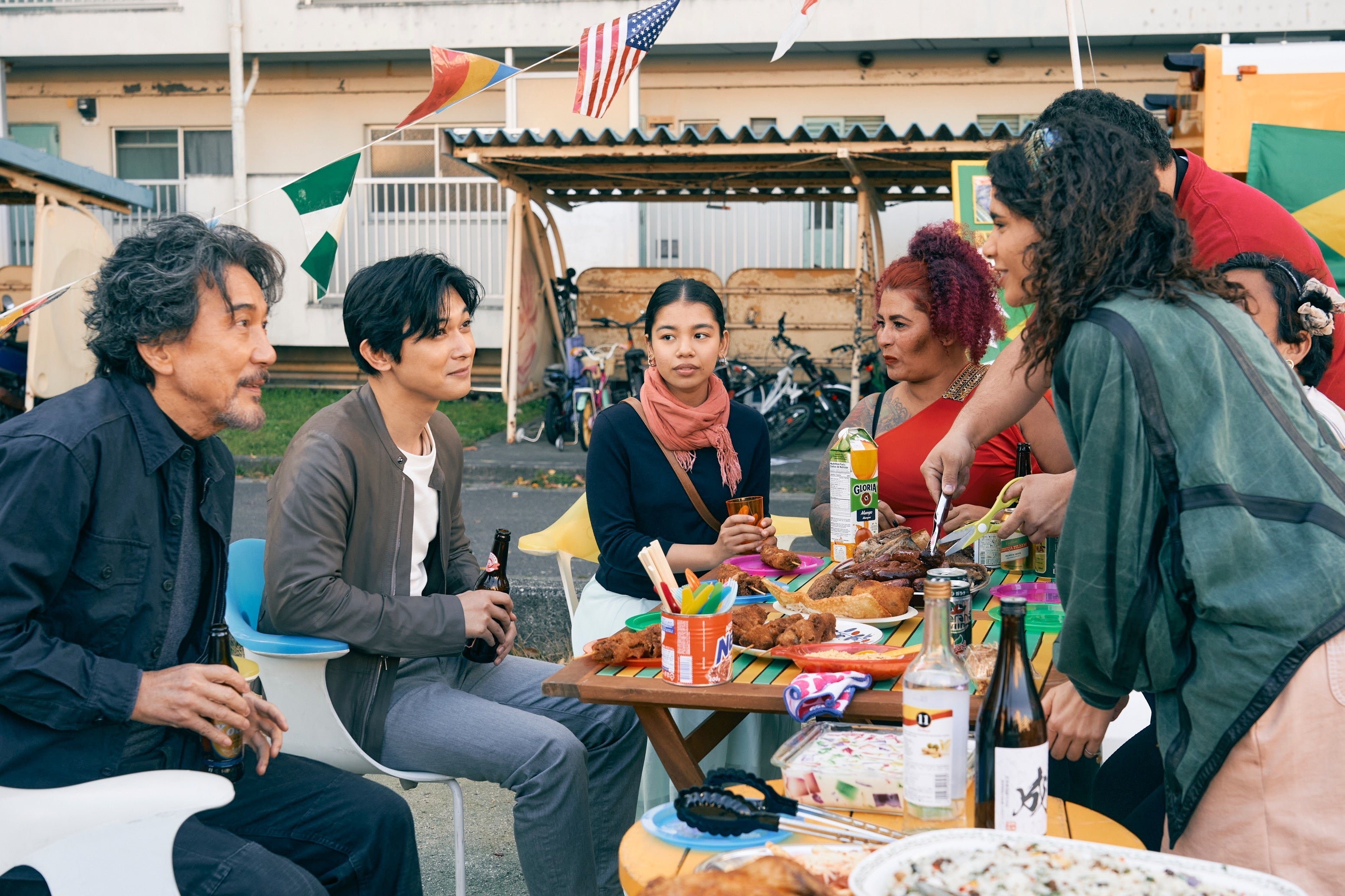 主人公の神谷誠治を演じるのは日本を代表する名優、役所広司。『孤狼の血』(18)で三度目の日本アカデミー賞最優秀主演男優賞、『三度目の殺人』(17)で同賞最優秀助演男優賞、『すばらしき世界』(20)でシカゴ国際映画祭最優秀演技賞など多くの賞に輝く。息子の学には、『キングダム』(19)で日本アカデミー賞最優秀助演男優賞とブルーリボン賞助演男優賞を受賞し、2021年にはNHK大河ドラマ「青天を衝け」に渋沢栄一役で主演した吉沢亮。話題のキャストが本作で初共演を果たした。さらに、ブラジル人を憎む半グレのリーダー、榎本海斗に、“サムライギタリスト”として世界に知られるミュージシャンでUNHCR(国連難民高等弁務官事務所)親善大使も務めるMIYAVIが扮して強烈な印象を残し、ベテランの佐藤浩市、松重豊、中原丈雄、室井滋らも脇を固めている。